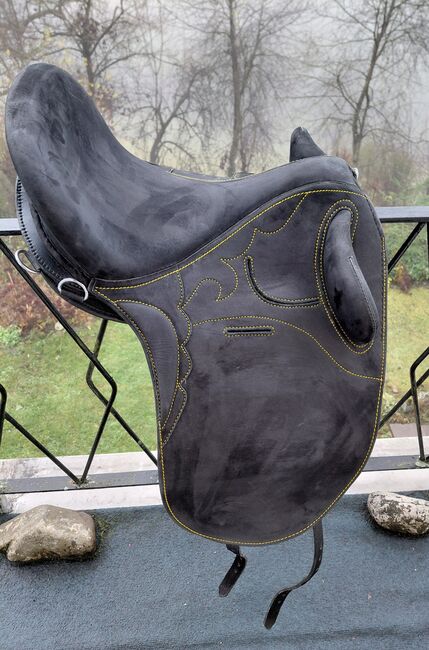 Schöner Stocksattel mit Klettkissen. Kurz. 42 cm Klettkissen. Sitzgröße "18.