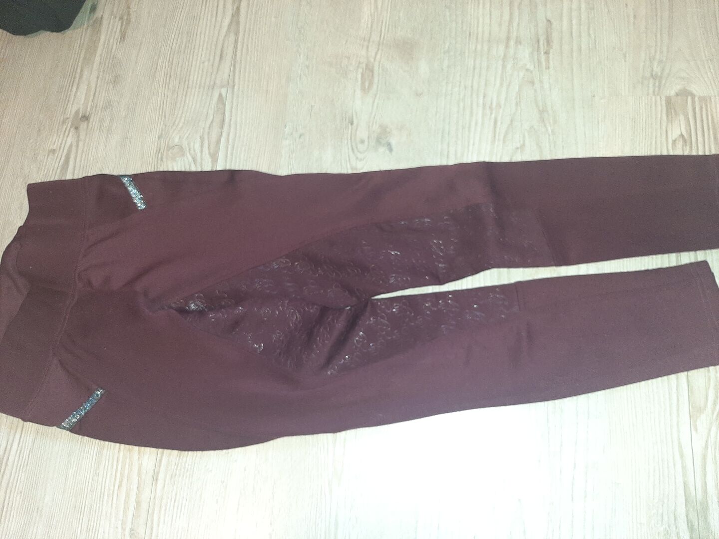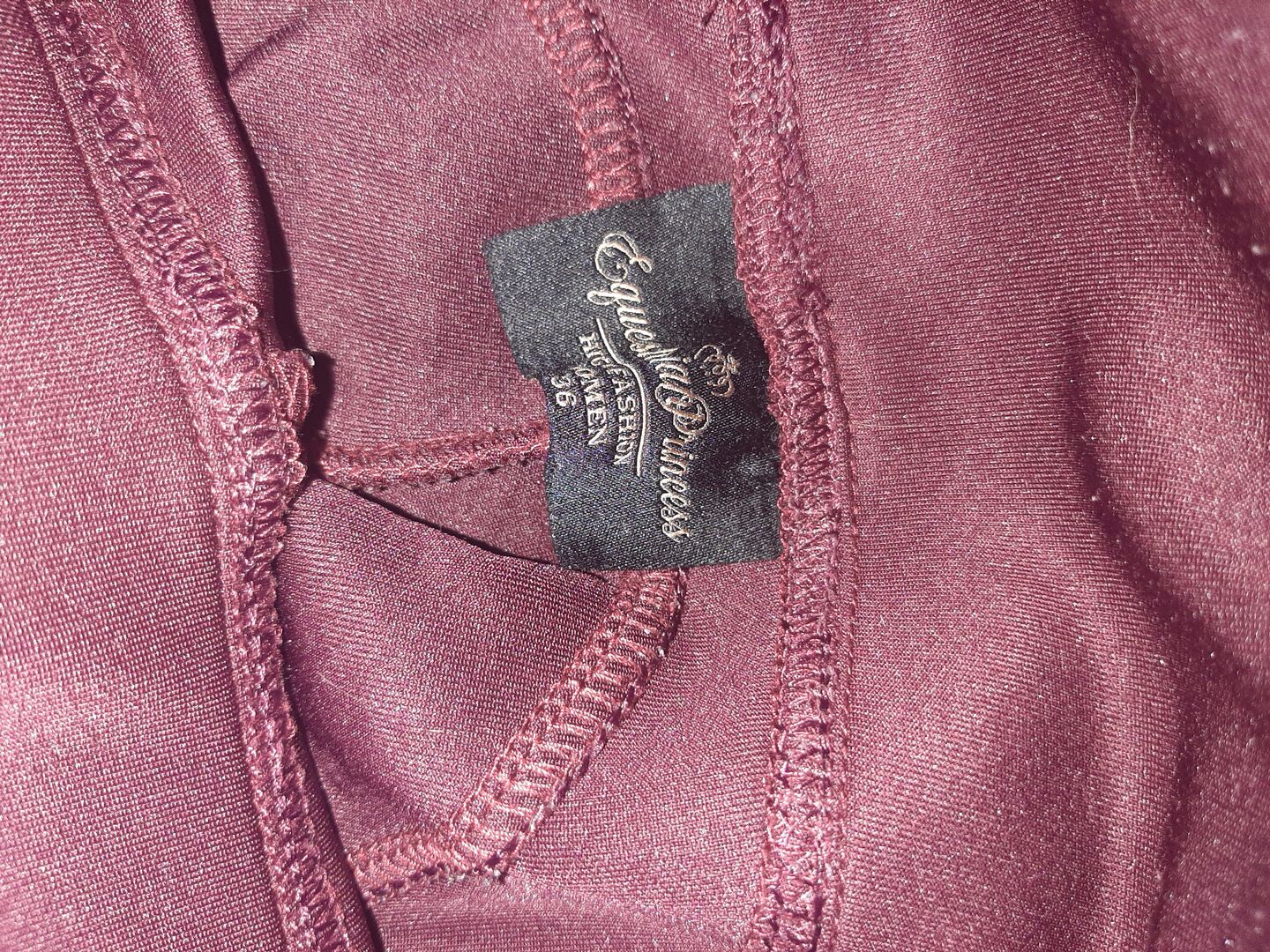 Legginsy jeździeckie - Sprzedam te bryczesy Kupiłem je kiedyś na targach, nie znam marki Mają kieszenie na telefon komórkowy, a także małą kieszeń z zamkiem błyskawicznym z tyłu Silikonowe pełne siedzisko Możliwa wysyłka