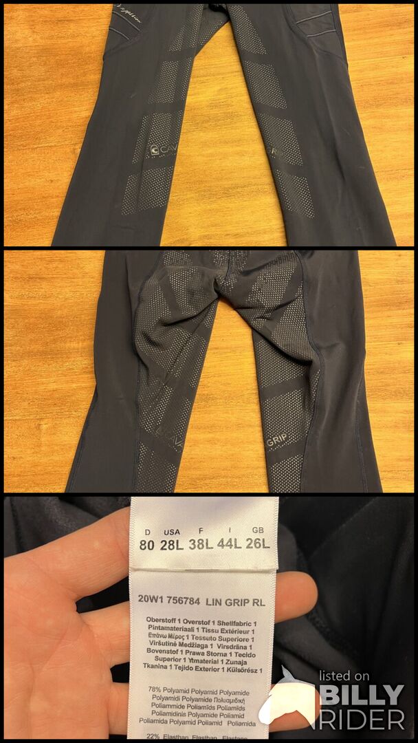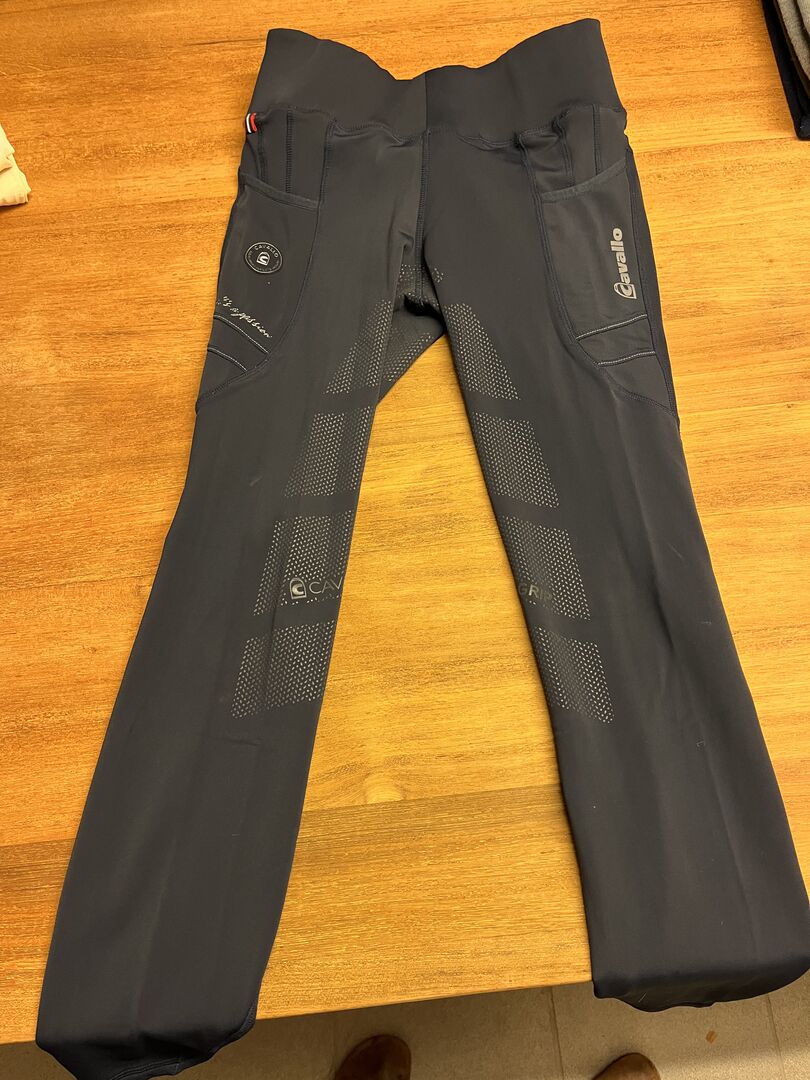Legginsy jeździeckie Cavallo LIN Grip - Legginsy jeździeckie marki Cavallo w kolorze niebieskim. Rozmiar 80 odpowiada rozmiarowi 38 z dłuższą nogawką, wewnątrz szorstki polar.