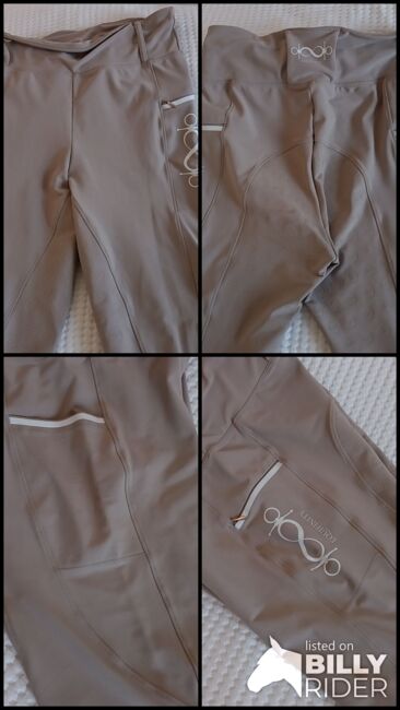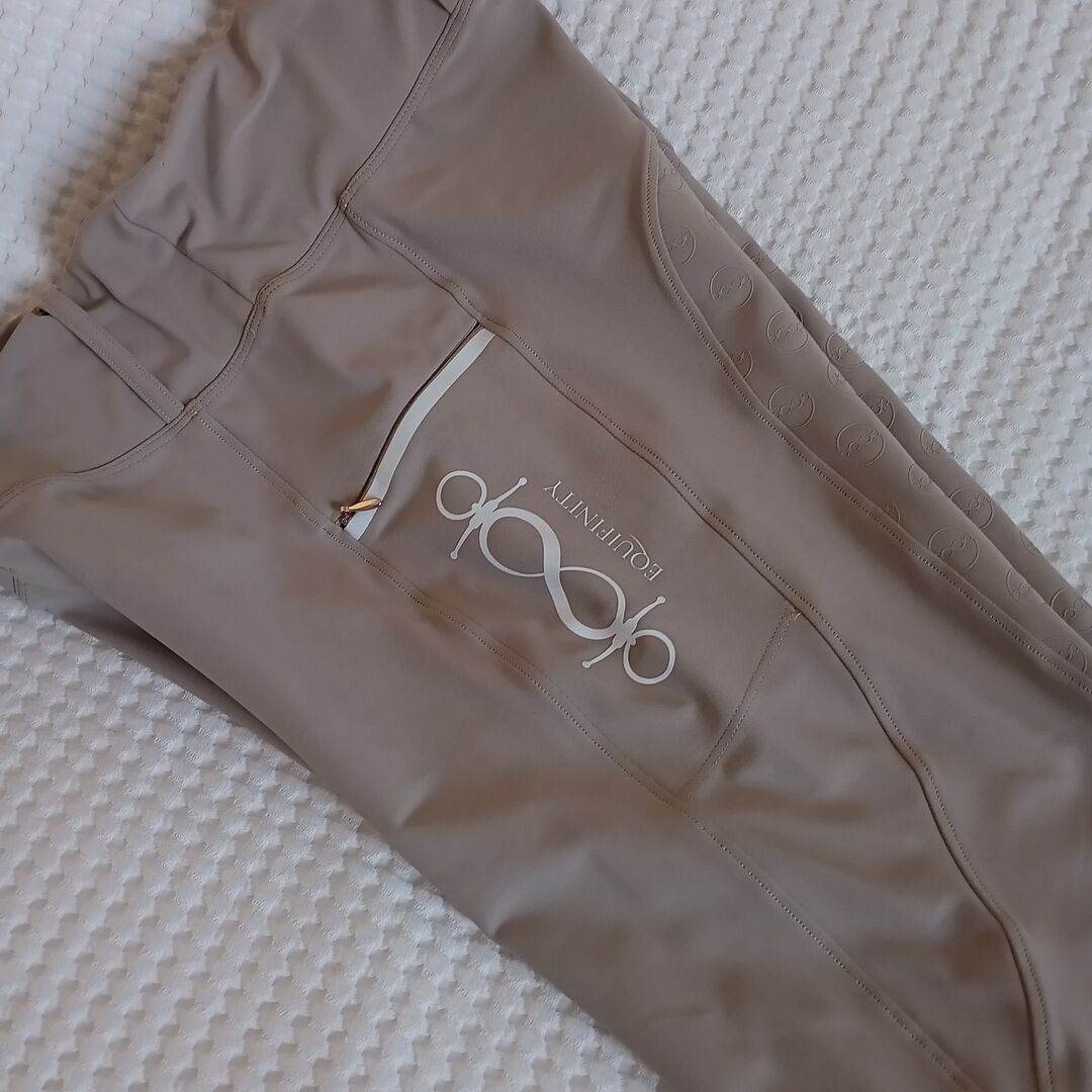 Legginsy jeździeckie Equifinity rozmiar L - Super wygodne legginsy jeździeckie w szampańskim rozmiarze L. Wysoka talia, wygodne w noszeniu dzięki 4-kierunkowemu rozciąganiu. Absolutny faworyt, ponieważ nigdzie nie szczypią.