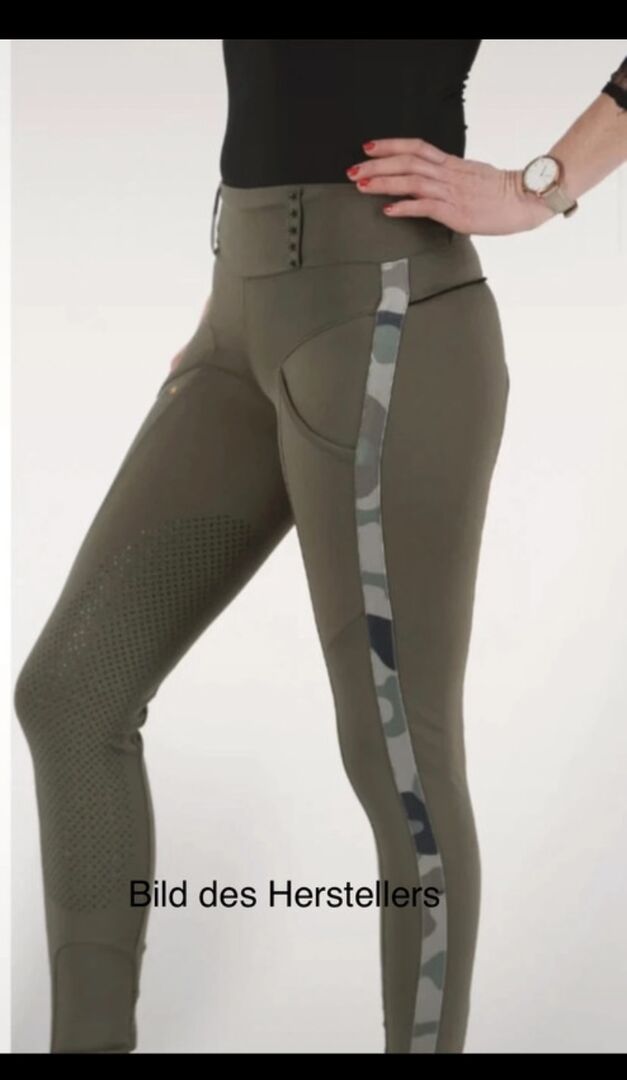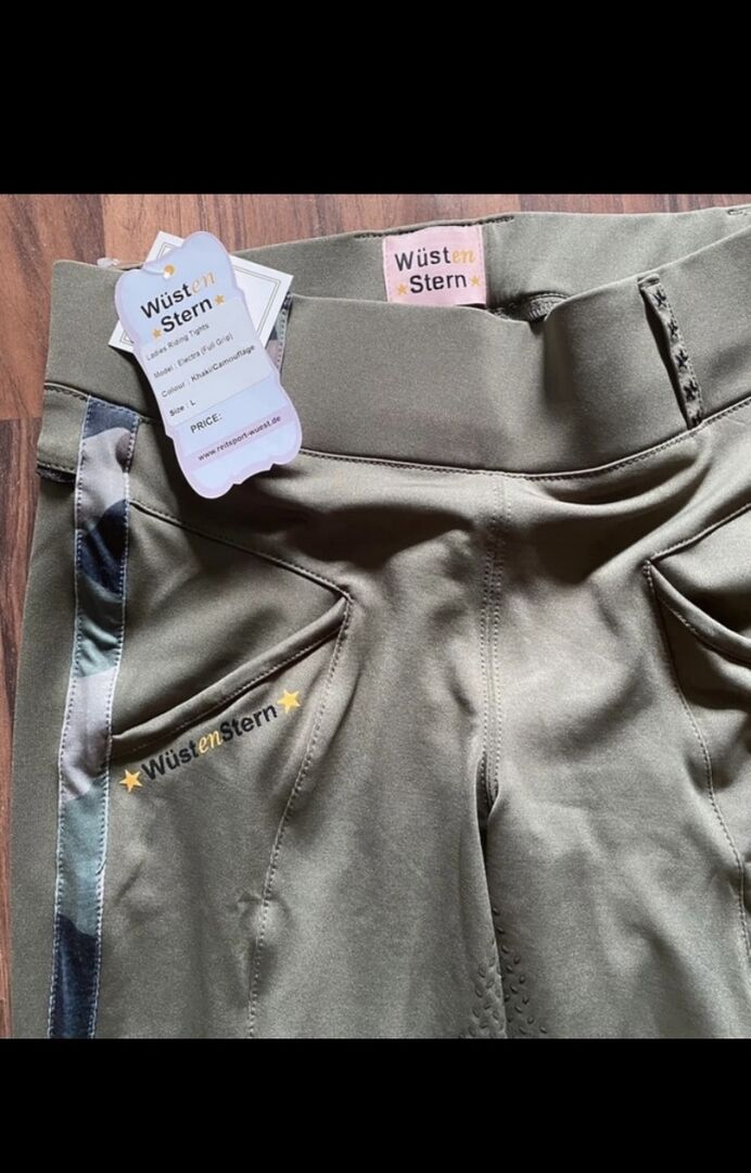 Legginsy jeździeckie New Grip Spodnie jeździeckie damskie - Całkowicie nowe legginsy jeździeckie marki "Wüstenstern Q Leggs" w pełnym siedzeniu/pełnym wykończeniu chwytnym z etykietą, rozmiar L. NP były 69€.