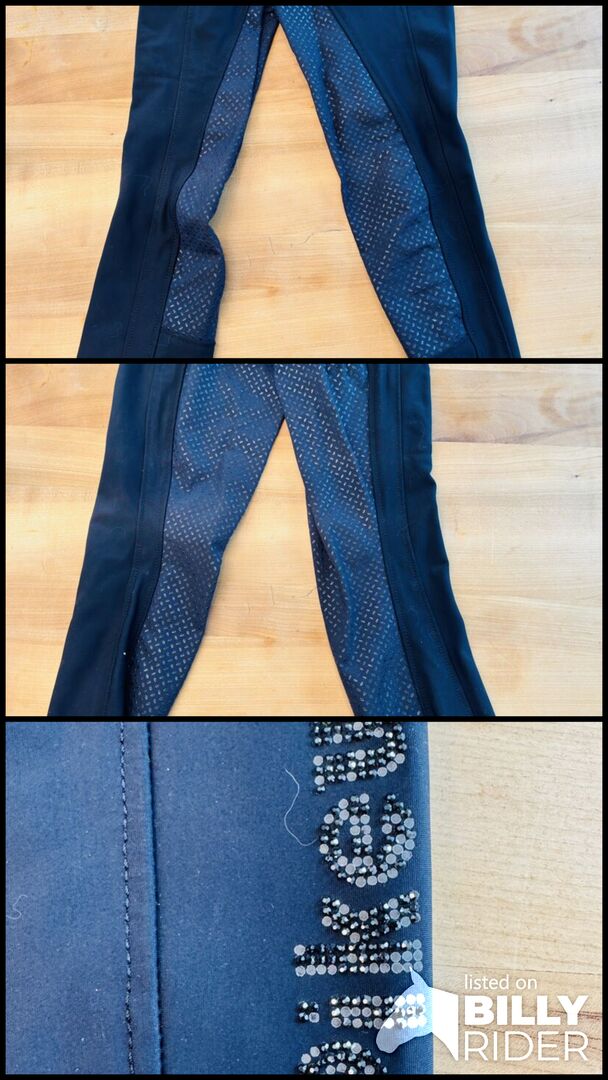 LEGGINSY JEŹDZIECKIE PIKEUR DZIECI IDA ATHLEISURE - Rozmiar 146, krój skinny wąski krój i dłuższe nogawki zapinana na zamek kieszeń na telefon komórkowy po prawej stronie Uchwyt jest w idealnym stanie, brakuje kilku kamieni z logo, ale nadal bardzo dobrze się błyszczy