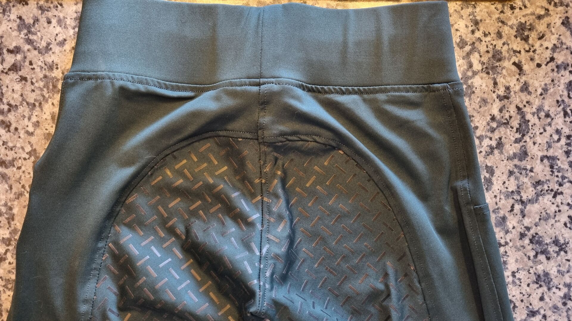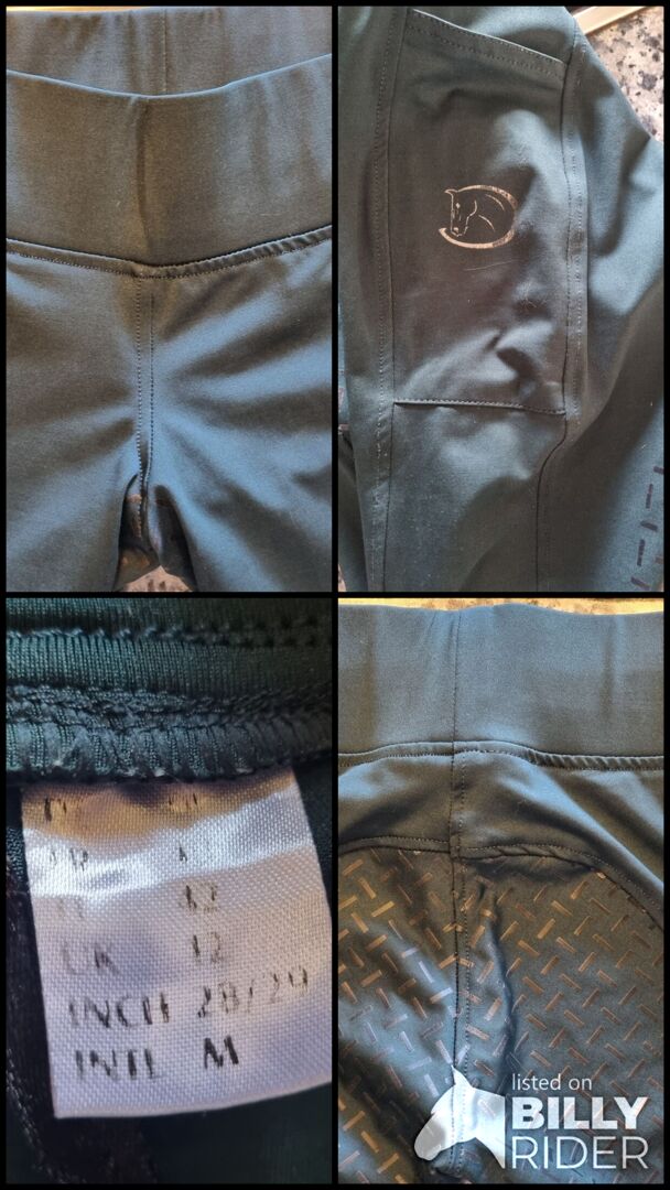 Legginsy jeździeckie Ridersdeal fir green rozmiar M - Legginsy jeździeckie Ridersdeal w rozmiarze 38/M w świetnym kolorze jodłowej zieleni, który niestety nie jest widoczny na zdjęciach. Wysoki pas Uchwyt w pełni nienaruszony, logo Ridersdeal lekko wyprane patrz zdjęcie. Brak innych wad Wysyłka z założeniem kosztów Sprzedaż prywatna, bez gwarancji
