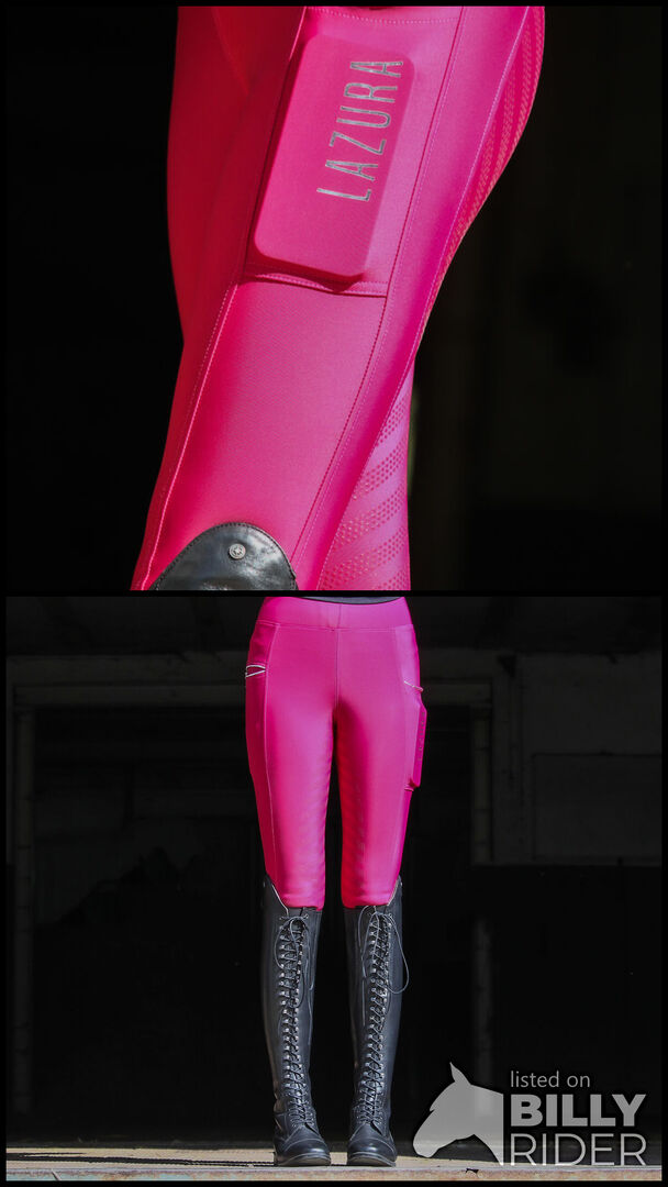 Legginsy jeździeckie różowe - Sprzedam moje nowe legginsy jeździeckie w kolorze różowym firmy Reiterladen24 w rozmiarze 32/34. Spodnie mają bardzo mocne, pełne siedzenie z uchwytem. Możliwa wysyłka i PayPal