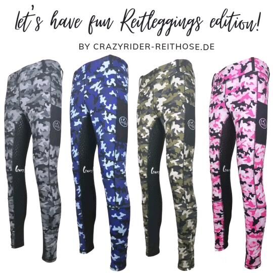 Legginsy jeździeckie z wysoką przyczepnością w kamuflażu - Nowy! Zabawmy się w edycję! Świetnie wydrukowane legginsy jeździeckie z wysokim chwytem, 2 kieszenie, ochrona UV 50 i wiele więcej. Odwiedź naszą stronę internetową, aby uzyskać więcej informacji.