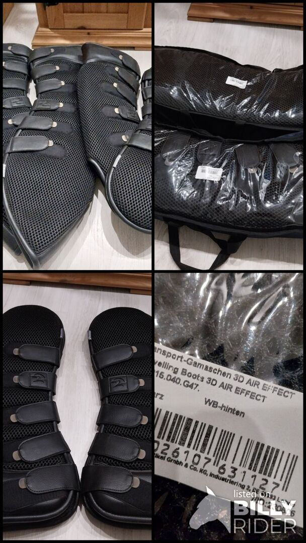 Legginsy transportowe - Buty transportowe BUSSE 3D Air Effect warmblood przód i tył w kolorze czarnym. Getry były przymierzane tylko raz na koniu, ale nigdy nie były używane. Dlatego są jak nowe. Nowa cena styczeń 2025 167,00 EUR