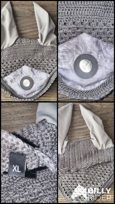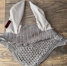 Lemieux Glacé Fly Hood Veils Ears Bonnet Crochet Sage Grey Size XL
