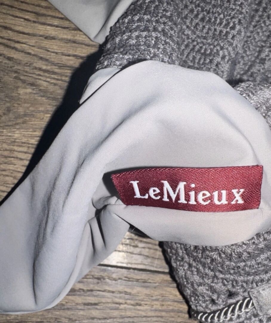 LeMieux Glacé fly hood in sage/grey.