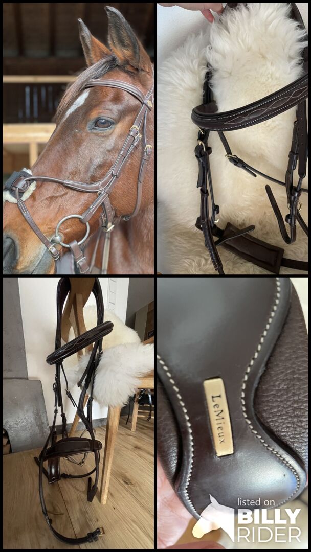 LeMieux Snaffle - Uzda Le Mieux w kolorze brązowym, rozmiar WB, była tylko na koniu do przymierzenia - niestety za duża, więc mogę tanio sprzedać. NP 275€