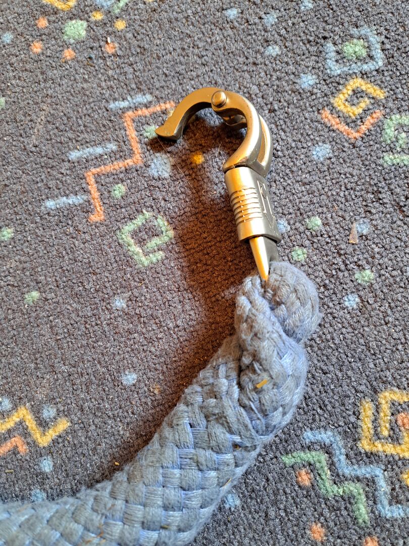 Lina z hakiem antypanicznym - Jasnoniebieska lina ze srebrnym hakiem antypanicznym, 2 m
