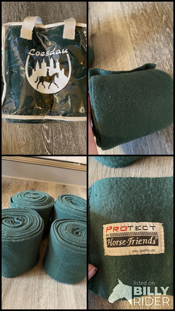 Loesdau Horse protect Bandages Forest Green WB - Sprzedam absolutnie nowe bandaże firmy Loesdau marki własnej Horse Protect. Zostały użyte tylko kilka razy na nodze konia i od tego czasu nie były używane. Zostały one świeżo wyprane, dzięki czemu są gotowe do natychmiastowego użycia. Na zdjęciu nie zostały jeszcze wyprane. Kolor jest trudny do sfotografowania, ale na 3 zdjęciu widać go dość dobrze.