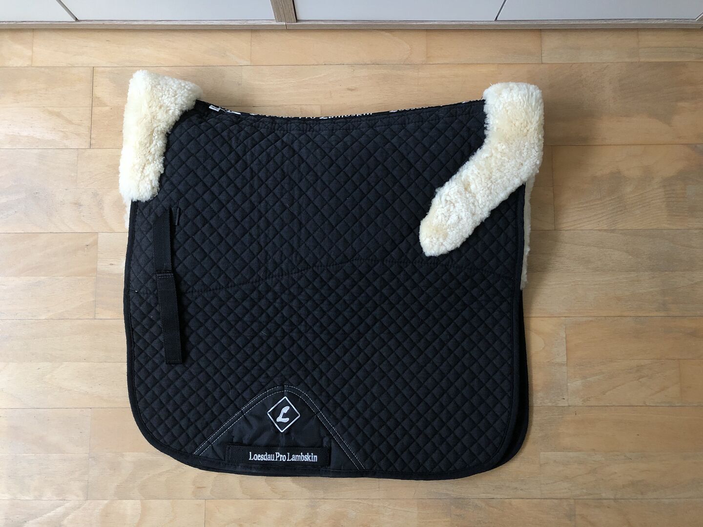 Loesdau Pro Lambskin Podkładka pod siodło z jagnięcej skóry, WB, DR, bez kręgosłupa - Sprzedam Loesdau Pro Lambskin Saddle Pad w rozmiarze Warmblood/ DR z prawdziwą skórą jagnięcą i prześwitem na kręgosłup.