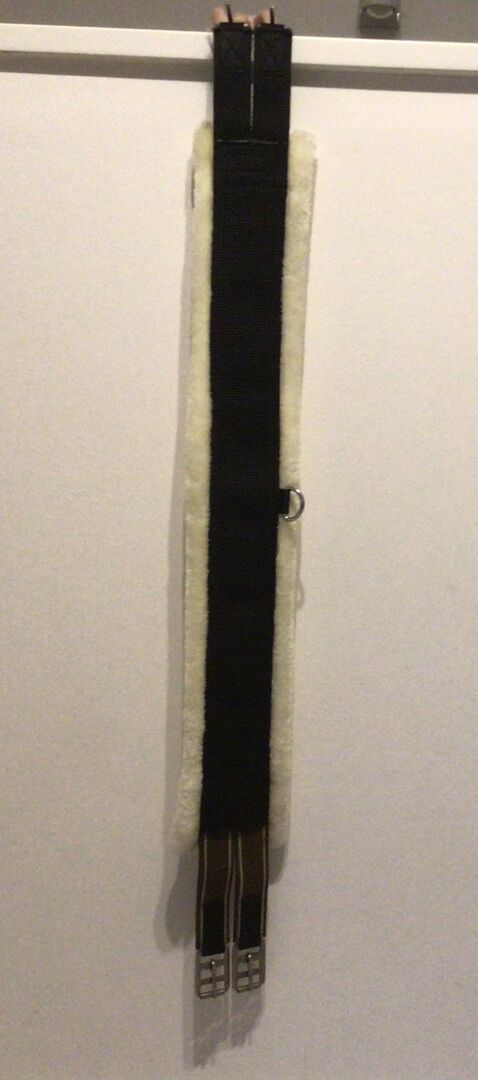 Loesdau Saddle Girth czarny z futerkiem 110cm - Pas do siodła Loesdau czarny z futerkiem 110cm. Nigdy nie były noszone na prawdziwym koniu.