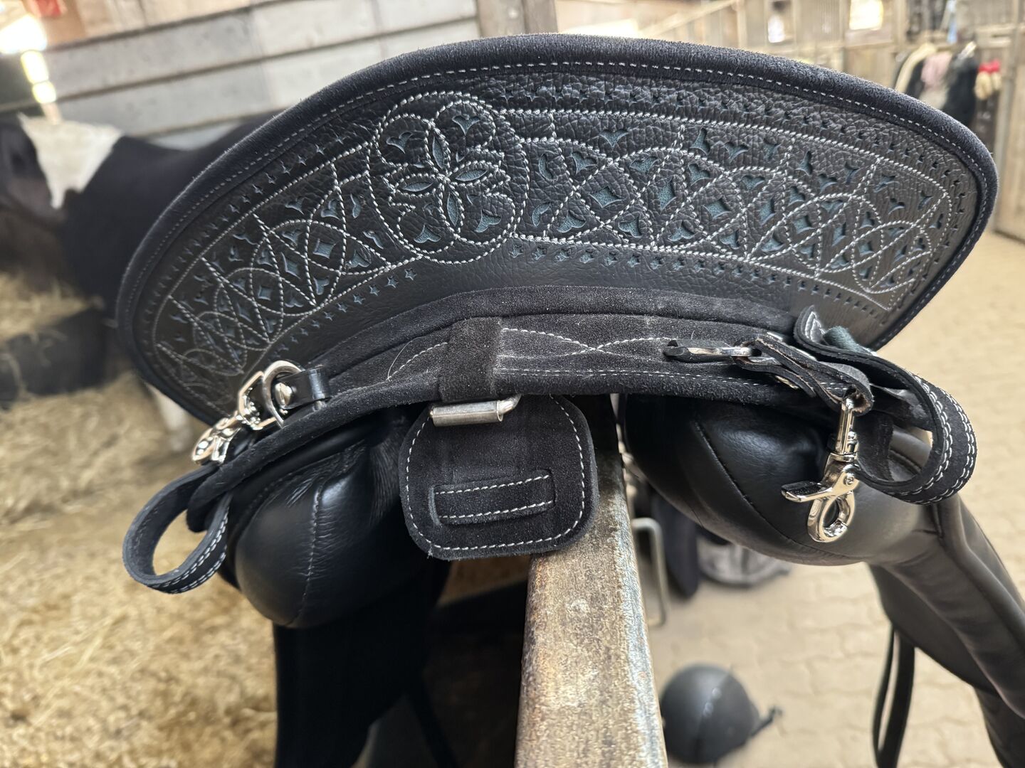 Siodło jest z 2022 roku i kupiłam je razem z koniem. Z powodów osobistych poprzedni właściciel nigdy nie był w stanie używać siodła i byłem praktycznie pierwszym, który go używał (od grudnia 2024 r.). Jednak budowa konia się zmieniła, więc siodło można by dopasować, ale dla mnie byłoby w nim za dużo wyściółki. Dlatego zdecydowałam się je oddać. Jest dobrze dopasowane do nieco szerszych, okrągłych koni.