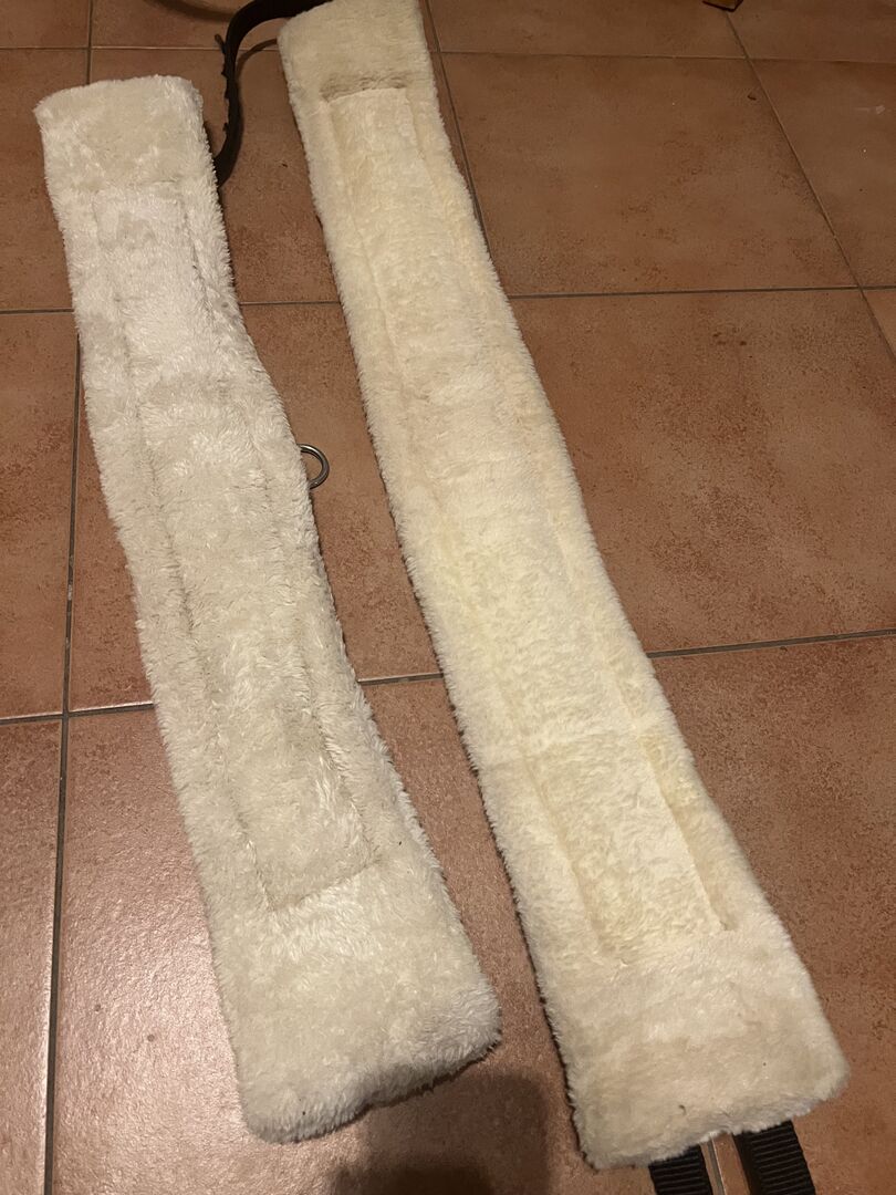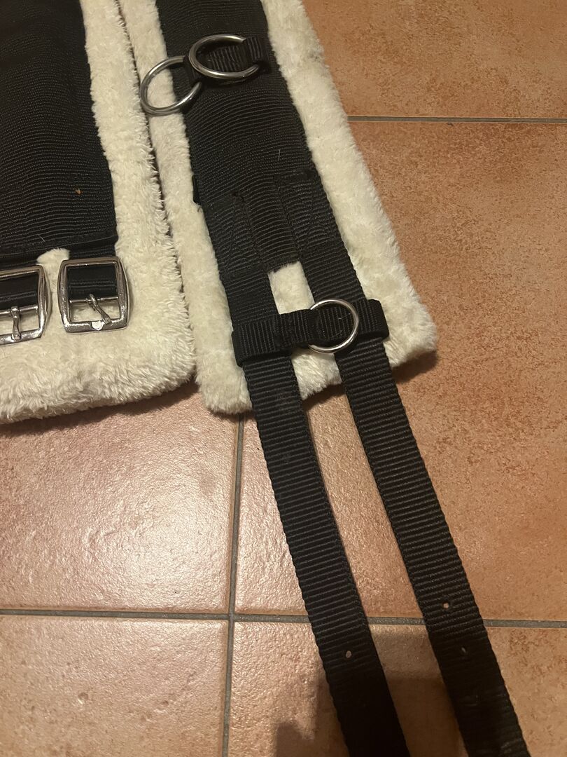 Lunging girth WB teddy fur - Obwód lonżujący w rozmiarze warmblood Ślady zużycia na paskach. Pierścień został doposażony, ponieważ stary został zgubiony.