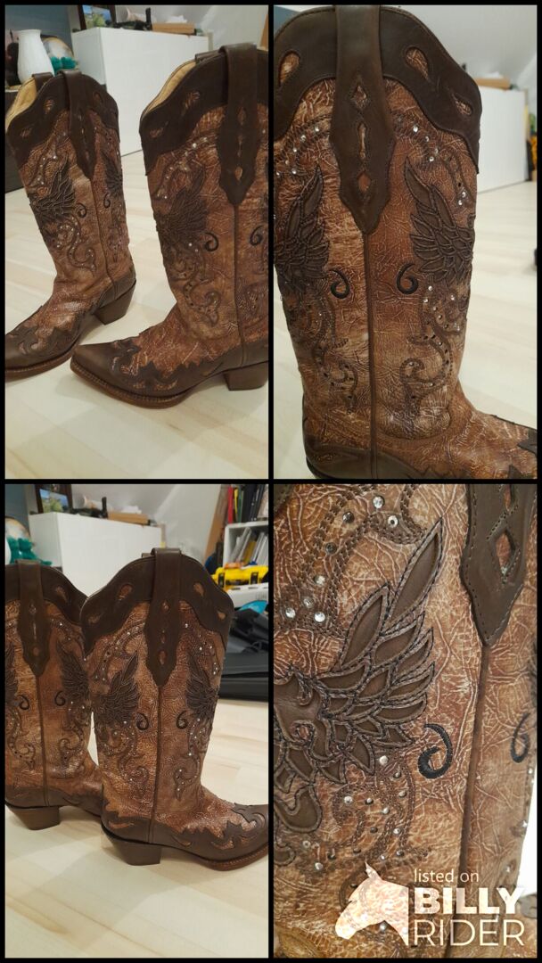 Mało noszone buty kowbojskie Corral z USA, rozmiar 39/US 8 - Buty kowbojskie Corral, prawdziwa skóra, z USA. Rozmiar US 8 (=39). Ponieważ miałem je na sobie tylko 1-2 razy, chciałbym je przekazać.