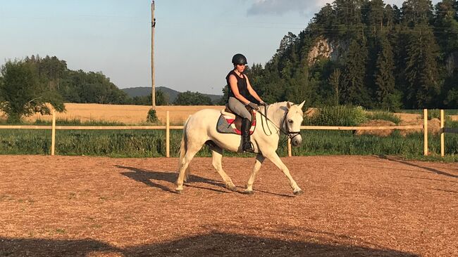 Jest to bardzo charakterystyczny Kleinpferd (148 cm), bardzo żywy pod siodłem i wykazuje szczególnie dużo radości podczas wiosny i w ubiorze. Jest optymalny dla freizeitreiterów, którzy często pracują na Reitplatz. Ich habe mit ihm den Reiterpass und die Reiternadel absolviert. Również w pracy w szkole mogę go bardzo dobrze ocenić.