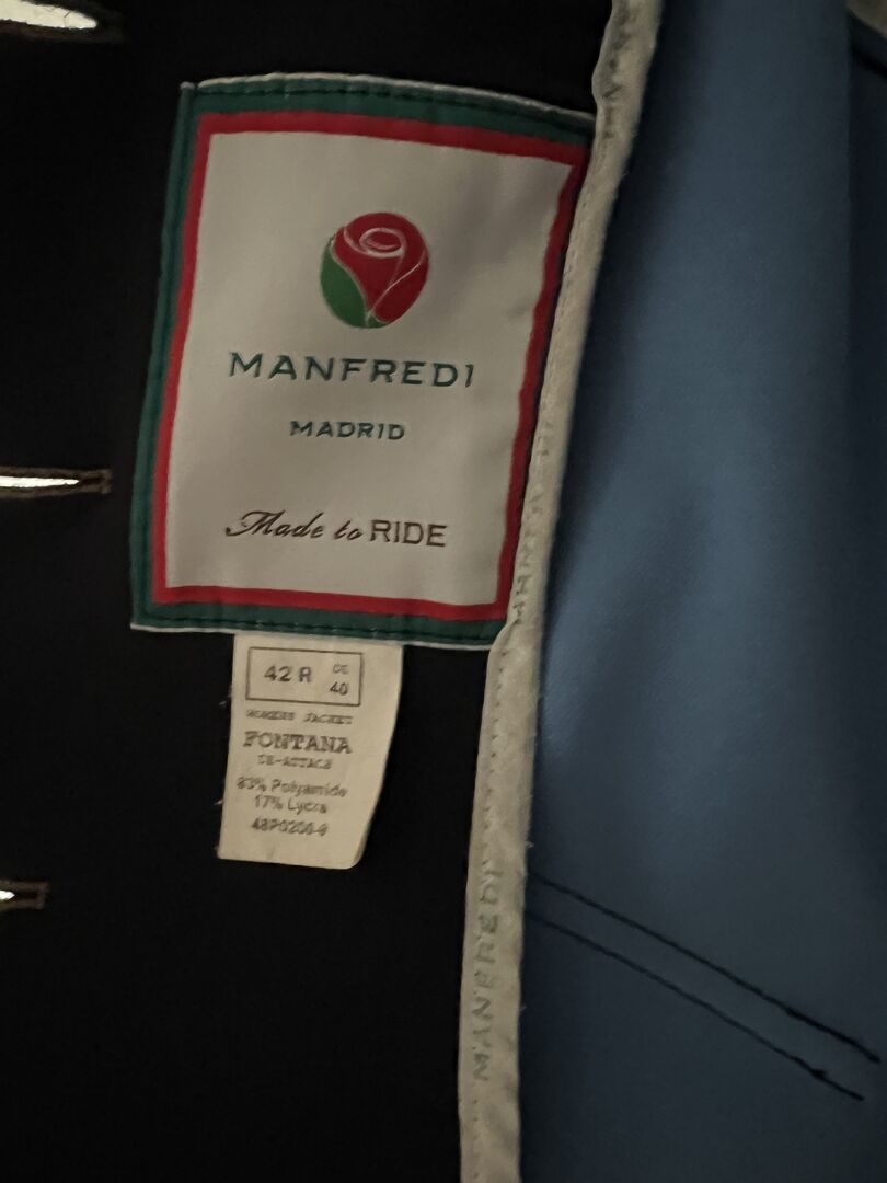Manfredi Show Jacket Navy Gr. 42 R (IT) Gr. 40 (DE) - Kurtka pokazowa od Manfredi z wymiennym kołnierzem w rozmiarze 42 R (IT) Gr. 40 (DE) Dwa rozcięcia z tyłu i bardzo ładnie skrojone z rozciągliwego materiału.