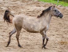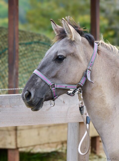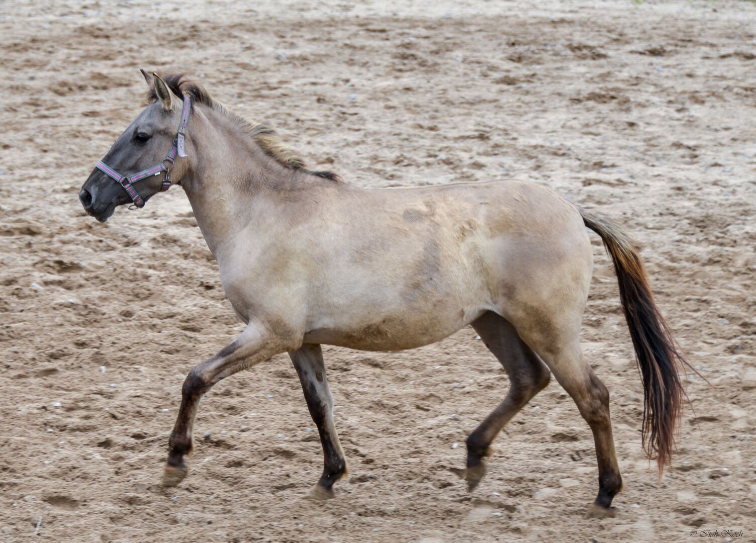 Manja sucht einen neuen Möhrchengeber, der ihr alles weitere beibringen kann. Sie ist eine bezaubernde Konik-Jungstute, geboren im Januar 2024. Diese charmante Silber-Graufalbe hat derzeit ein Stockmaß von 135 cm (gemessen), mit langen Beinen und einer sportlichen Statue. Sie stammt aus einer Sportkonik-Linie. Beide Eltern sind über 1.45m.