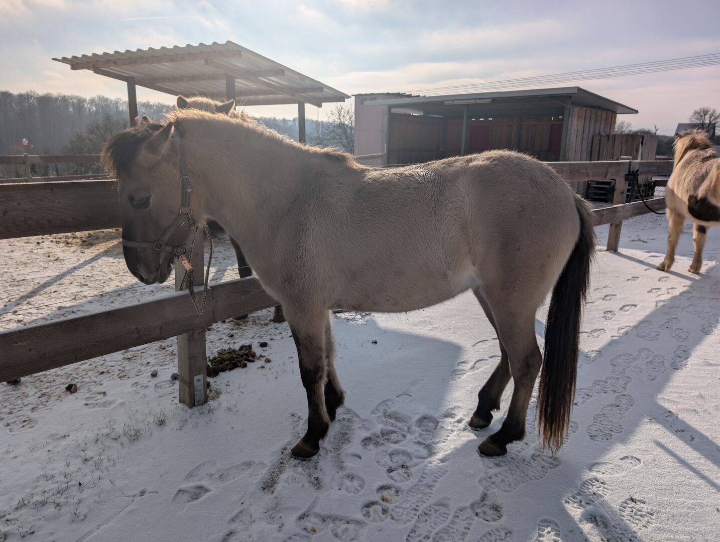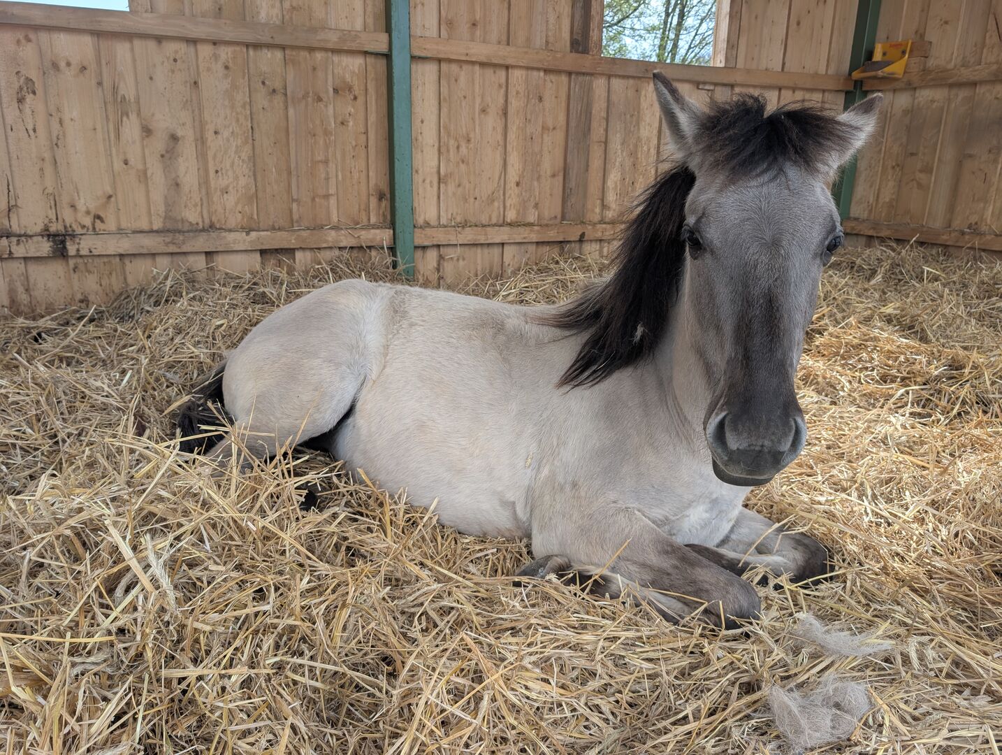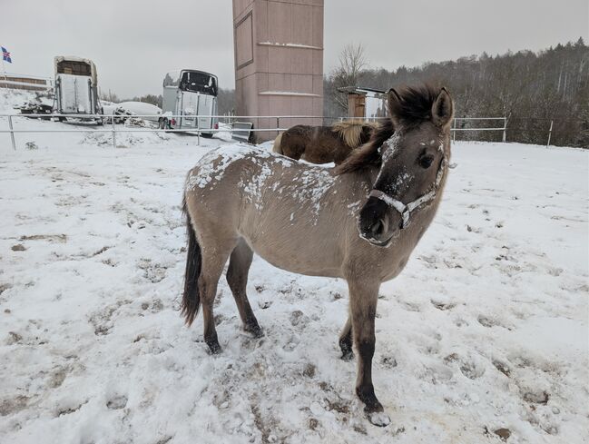 Manja sucht einen neuen Möhrchengeber, der ihr alles weitere beibringen kann. Sie ist eine bezaubernde Konik-Jungstute, geboren im Januar 2024. Diese charmante Silber-Graufalbe hat derzeit ein Stockmaß von 137 cm (gemessen), mit langen Beinen und einer sportlichen Statue. Sie stammt aus einer Sportkonik-Linie. Beide Eltern sind über 1.43m.