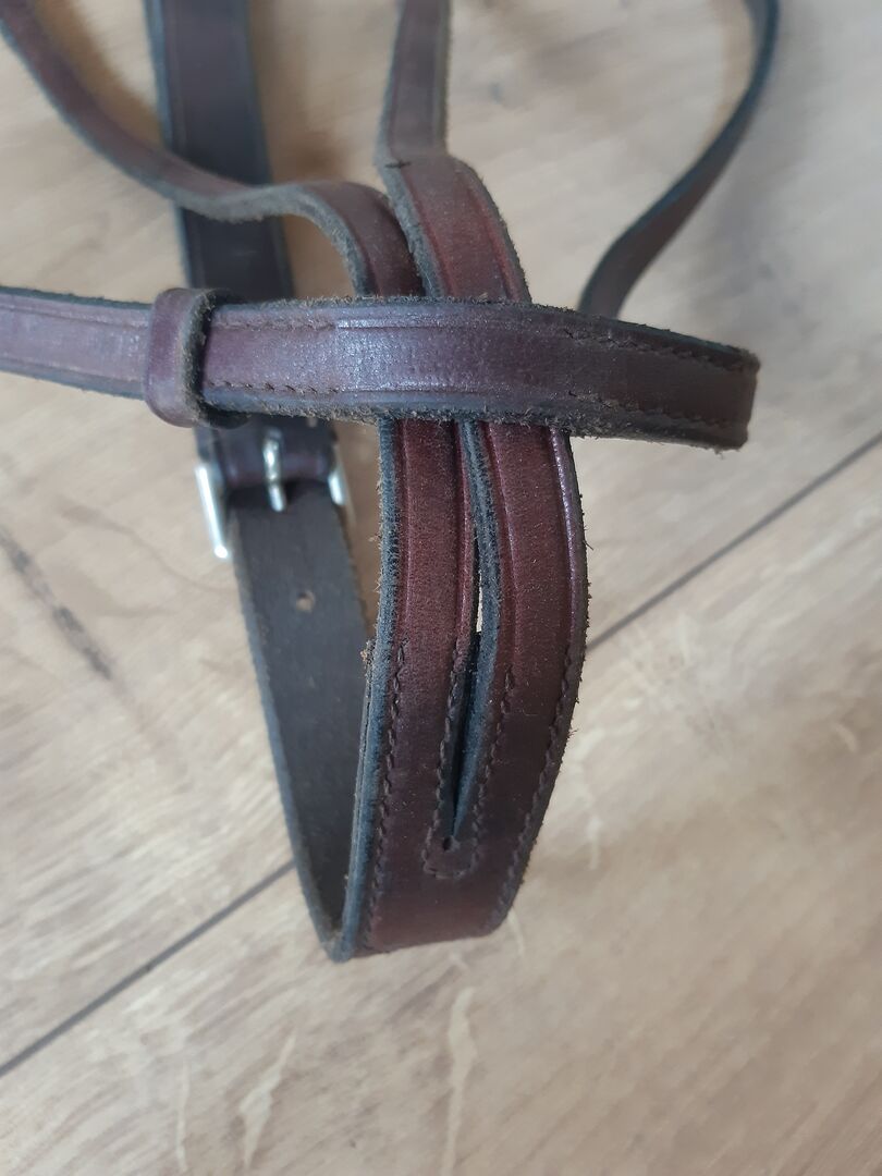 Martingale czerwono-brązowy - Martingale w kolorze czerwono-brązowym, dobrze utrzymane i mało używane. Dość miękka skóra.