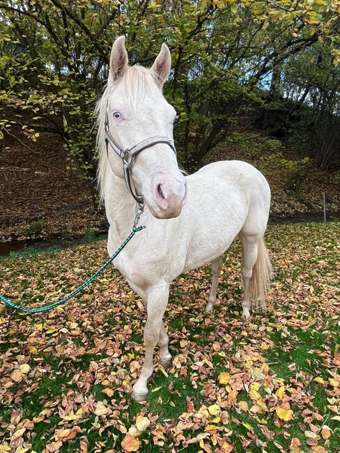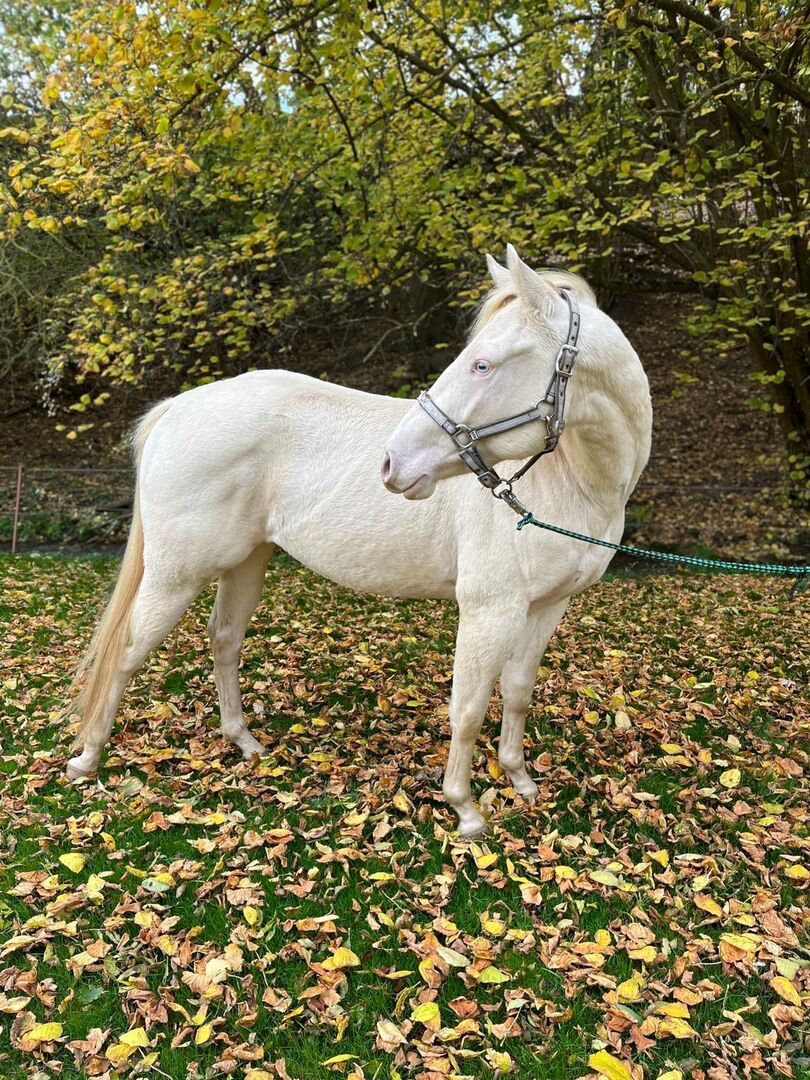 Marzenie w przydymionym kremie - Lokalizacja: 06618 Naumburg Jack Pine Forever - zdrowy, dobrze zbudowany wałach rasy Paint Horse, urodzony 31 marca 2023 r., w rzadkim dymno-kremowym jednolitym kolorze z dwojgiem jasnoniebieskich oczu - naprawdę przyciąga wzrok! Przy obecnym wzroście ok. 147 cm jest harmonijnie umięśniony, solidny i idealnie proporcjonalny. Jego charakter czyni go wyjątkowym: ufny, przytulny i zorientowany na ludzi, jest przyjazny i chętny do nauki od samego początku. Jest dobrze wychowany, nieskomplikowany i uważny, wie o wizytach u weterynarza i kowala, jest regularnie odrobaczany i jest bardzo dobrze zaznajomiony z otwartą stajnią i pastwiskiem. Jack Pine Forever ma już źrebięce ABC i jest starannie lonżowany, co czyni go idealnym młodym koniem do samodzielnego treningu. Jego solidny, wszechstronny rodowód, 5-panelowe n/n po rodzicach i pełne papiery Paint Horse czynią z niego wszechstronnego partnera do rekreacji, który później zapewni przyjemność w wielu dziedzinach. Ten fajny młody koń łączy w sobie solidność, charakter i piękno - idealny dla każdego, kto szuka niezawodnego, chętnego do nauki i przyciągającego wzrok konia. Jack Pine Forever czeka, by rosnąć i błyszczeć razem ze swoim nowym właścicielem!