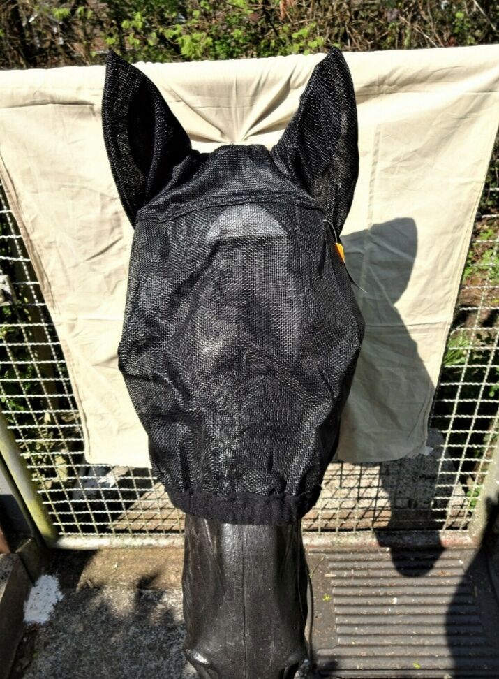 Maska na muchy - Sprzedam nieużywaną maskę na muchy. Według producenta nadaje się dla koni o wzroście od 140 do 160 cm. Niestety, na moją klacz (1,47 cm) maska na muchy jest za duża.