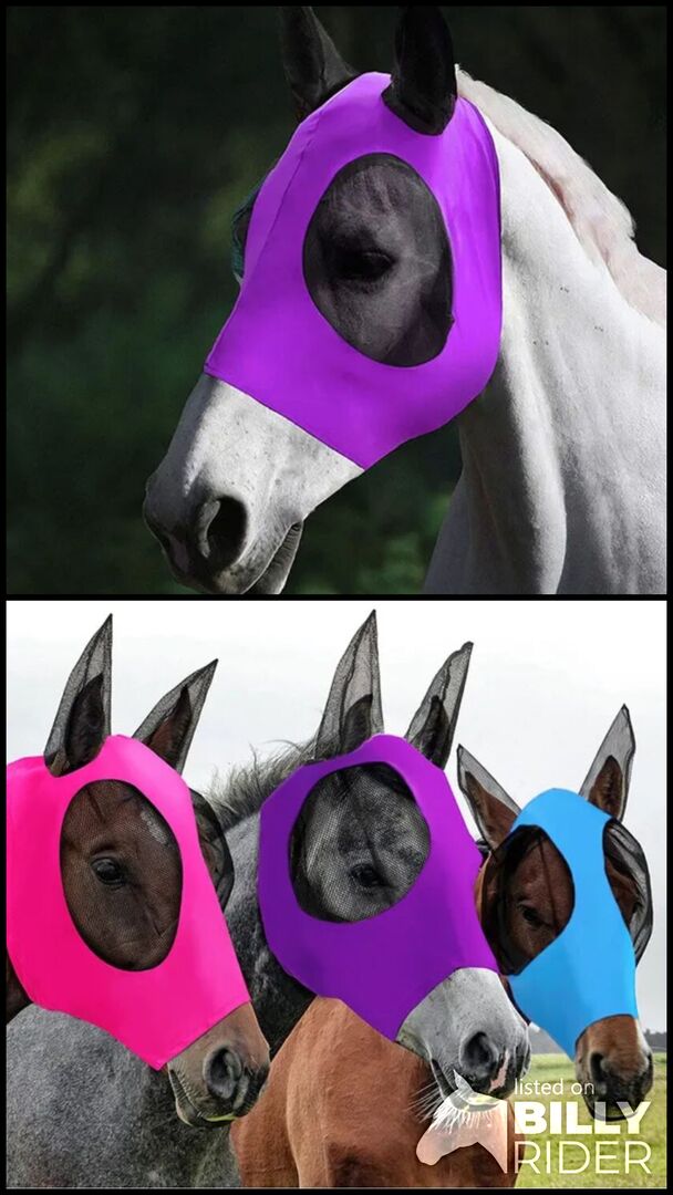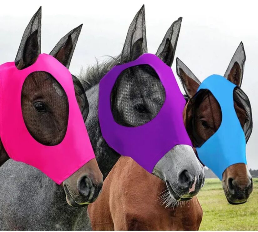 Maska na muchy dla koni - Ostateczne maski na muchy są już w sprzedaży. Rozmiar: Rozłożony rozmiar to około 45 * 35 cm długości i szerokości. Kolor: czarny, niebieski, szary, różowy, fioletowy