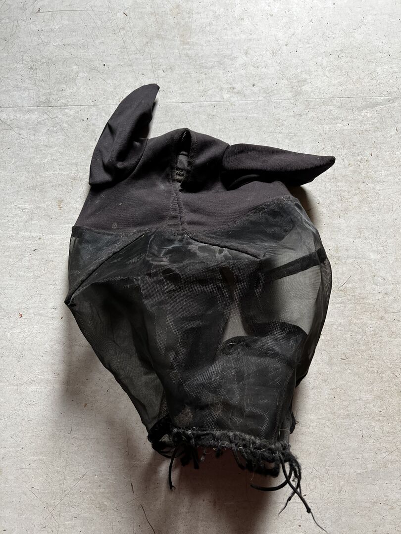 Maska przeciwlotnicza COB - Sprzedaję moją rzadko używaną maskę na muchy. Była ona trochę za duża na moją klacz, dlatego też ciągle gubiła maskę. Maskę kupiłam zaledwie miesiąc temu. Niestety, niektóre paski z przodu nosa są do połowy oderwane.