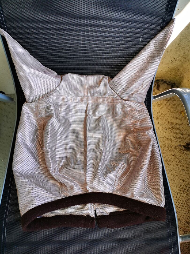 Maski na muchy - # 2 szt. Maseczki na muchy w kremie, były tylko raz na koniach, świeżo po umyciu. Szt. O. 15.- # Maska na muchy czarna bez uszu z rzepem na nosie, FULL, Fr. 10.- # Fly fringe, COB, Fr. 3.-