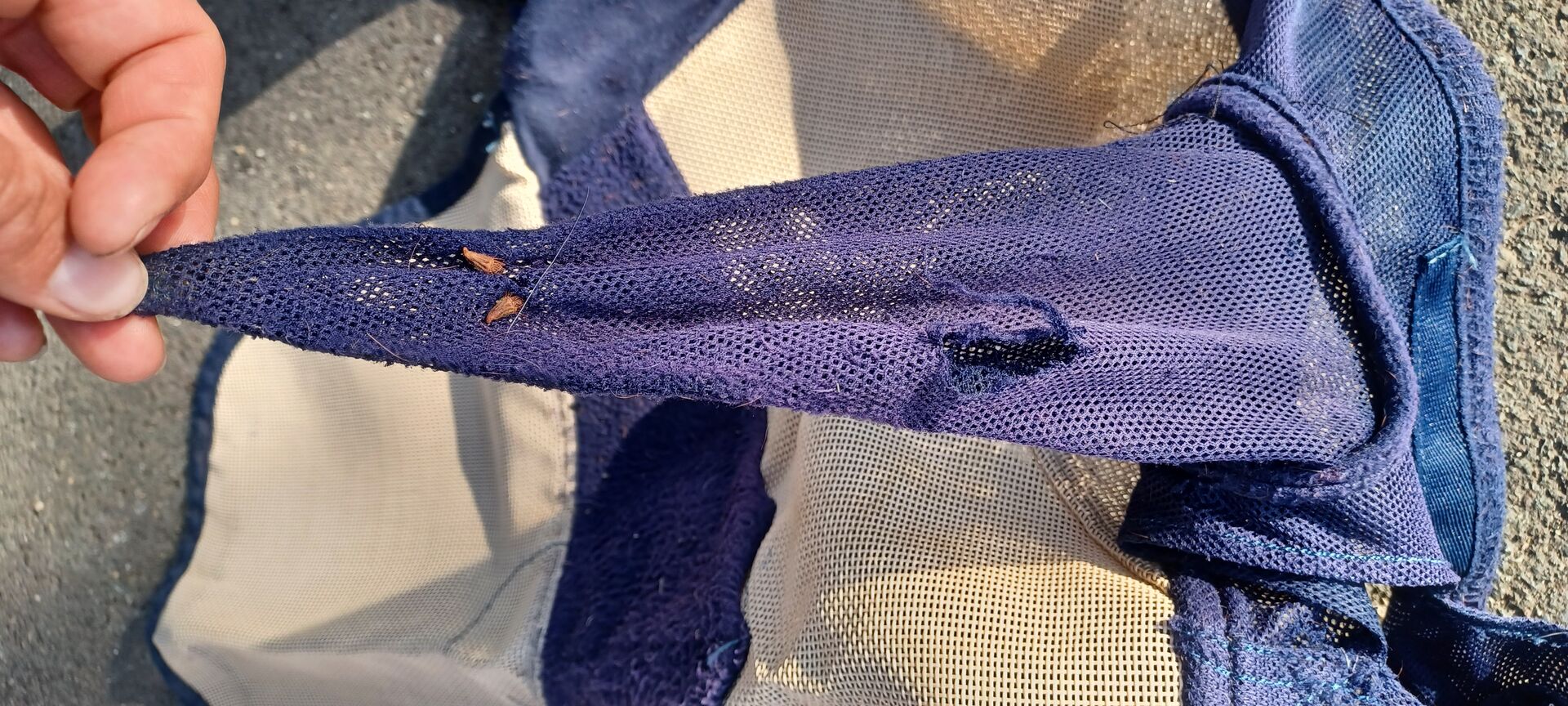 Maski na muchy - Mam na sprzedaż 2 maski na muchy, są trochę starsze. Rozmiar FULL, już załatane na siatkach na uszy ale także 1-2 dziury wciąż obecne. Reszta maski nadal w świetnym stanie i nie jest uszkodzona, rzep nadal nienaruszony