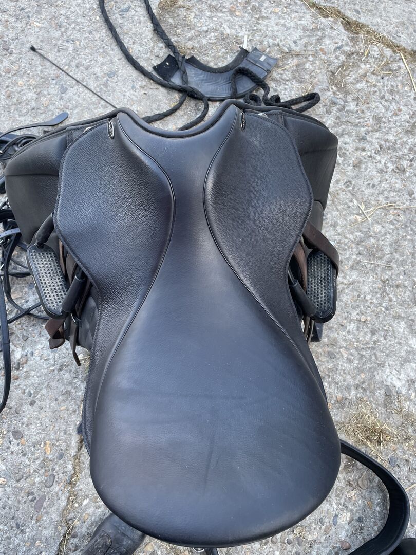 Massimo Saddle-up Dressur 18.5 Zoll - Oryginalny raport na zdjęciach. Sattel passt leider meinem Pferd nicht, lag nur 5 Mal drauf, ansonsten im Spind, also neuwertig. Kammer 32, kann geweitet werden. Zoll 18,5, fällt wie eine 18 aus.