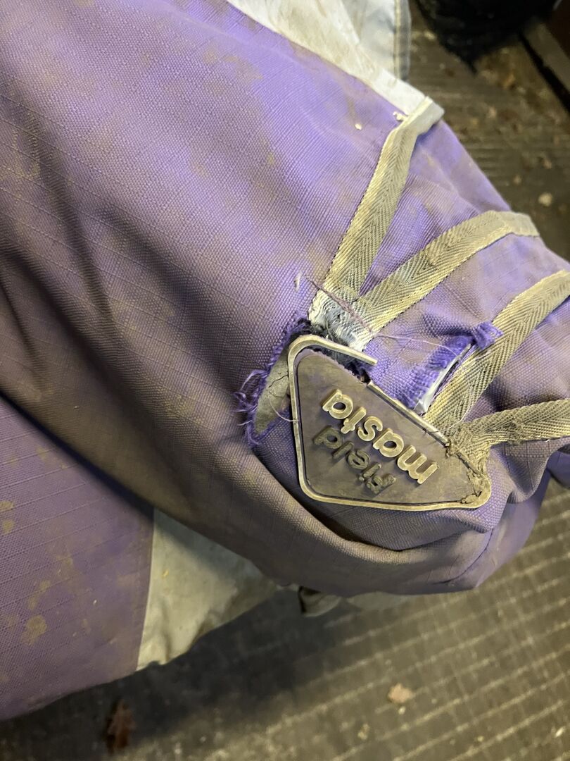Used, has a rip that will need repairing (should be easy) and a front clip missing. Can be done up with the strap through the ring, without the clip or easily replaced. Washed and reproofed recently and only used for a couple of weeks since