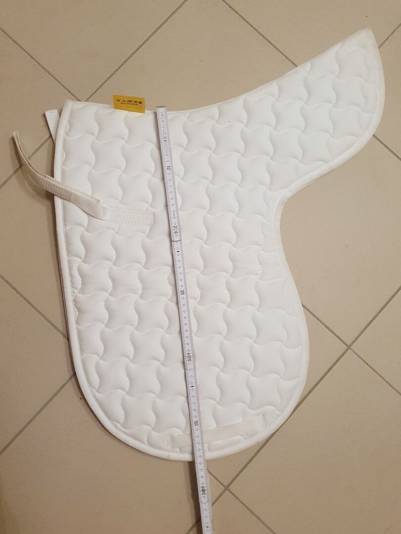 Materiał na siodło ujeżdżeniowe jak nowy od Kavalkade w kolorze białym - Oferuje tutaj białą derkę pod siodło WB / ujeżdżenie. Nie jestem pewna, chyba nigdy jej nie używałam, a jeśli tak, to tylko raz lub dwa. Po prostu leżała przez jakiś czas. W każdym razie jest w najlepszym stanie.