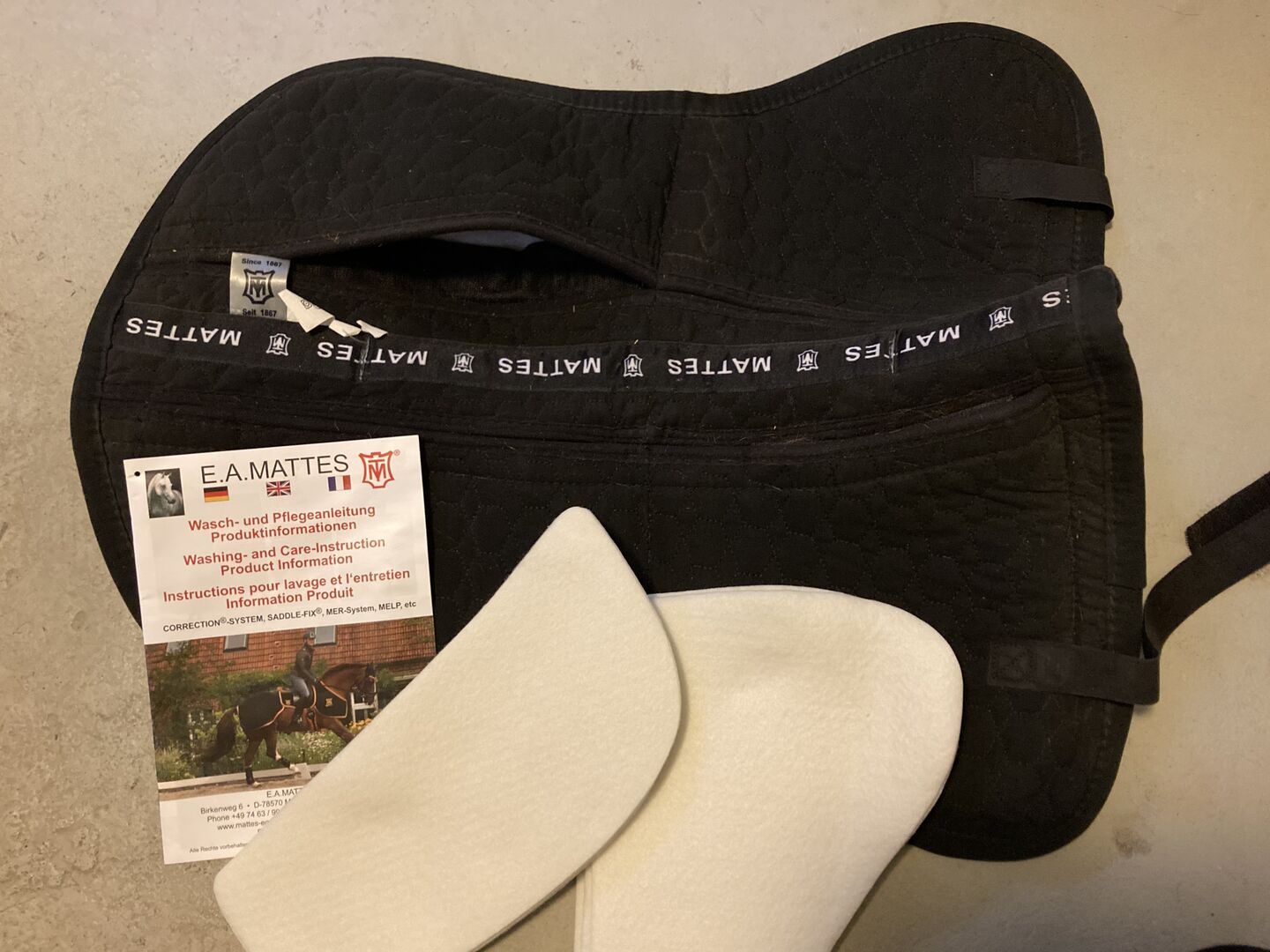 wytrzymały pikowany materiał MATTES z wkładkami POLY-FLEX Podkładka pod siodło z CORRECTION® firmy MATTES to wysokiej jakości korekcyjna podkładka pod siodło o anatomicznym kroju. Wykonana z wytrzymałej tkaniny pikowanej MATTES z rdzeniem poly-flex i z 2 kieszeniami CORRECTION-SYSTEM z wkładkami POLY-FLEX. W części siodłowej panele mają 2 kieszenie z 3 wkładkami POLY-FLEX (5 mm) każda, aby wyrównać nierówności. Dla młodych lub niewytrenowanych koni z początkowo szerokimi siodłami, z możliwością łatwej i elastycznej zmiany liczby wkładek w zależności od warunków treningu. Dla koni trenowanych, które dużo zmieniają w trakcie sezonu zawodów. Do wyrównania nierówności w budowie, np. u koni o nierównych bokach, do korekcji jednostronnej. Do przywrócenia równowagi siodła u koni z obniżonym grzbietem z powodu wieku. Przy dopasowywaniu nowych siodeł. Ze względu na prostotę systemu, aktualnie niezbędne korekty i odpowiednie ukształtowanie koni mogą być dokonywane również w sezonie zawodów. Szczególnie nadaje się do siodeł z uzdą. W zestawie 3 wkładki na torebkę.