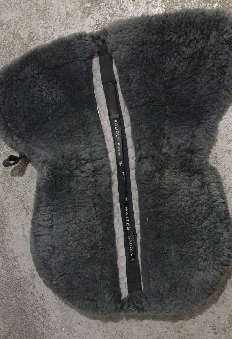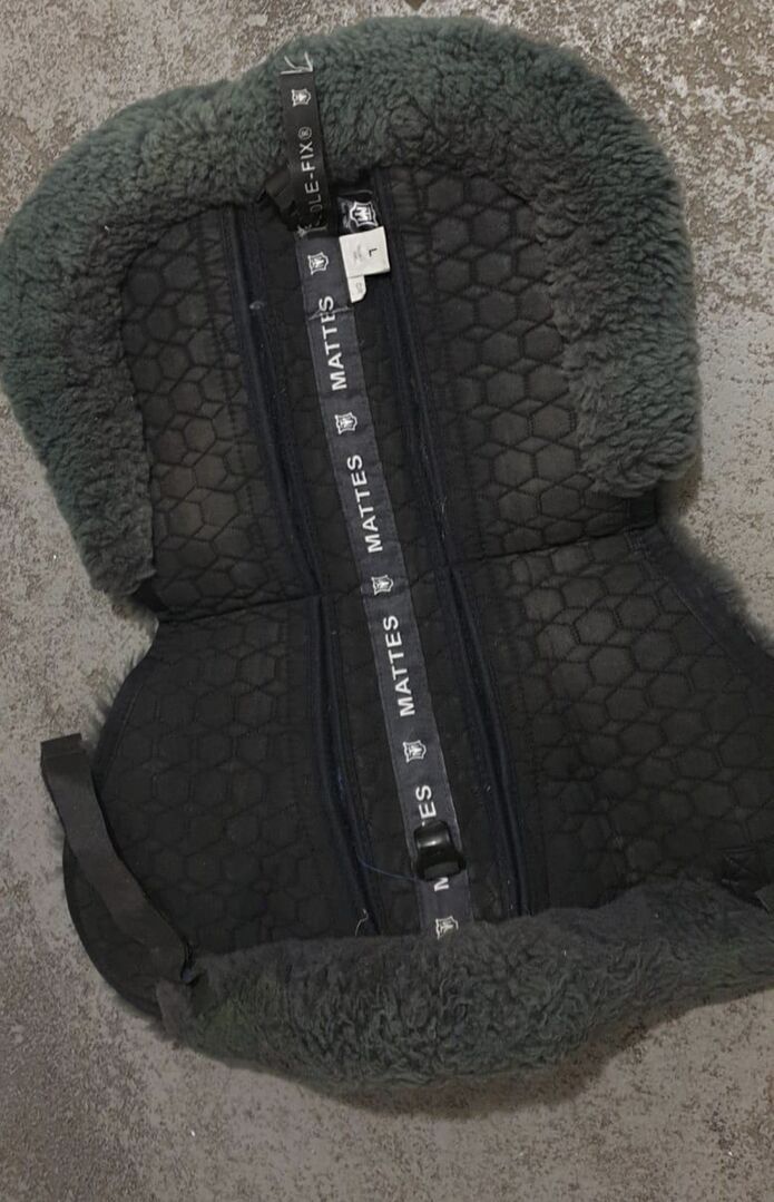 Matowa skóra jagnięca z wkładkami korekcyjnymi - Sprzedaję mój pad w kolorze czarnym firmy Mattes. Można go jeszcze lepiej dopasować do grzbietu konia poprzez włożenie filcowych wkładek. Wkładki filcowe są również wliczone w cenę i są dostarczane. Jedynie kolor futra jest trochę wyblakły.