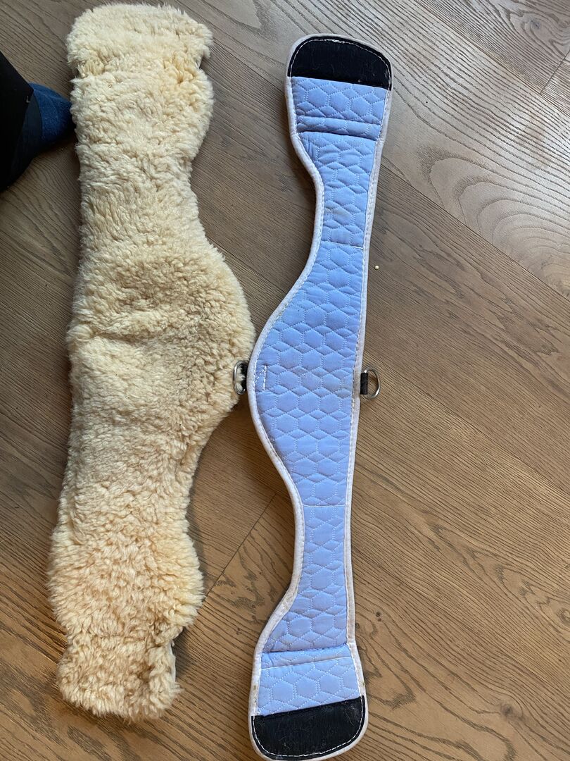 Mattes moon girth western 75 cm z jagnięcą skórą - Na sprzedaż obwód księżycowy firmy Mattes z pokrowcem ze skóry jagnięcej. Stan bardzo dobry, ale wady optyczne (patrz zdjęcia)
