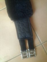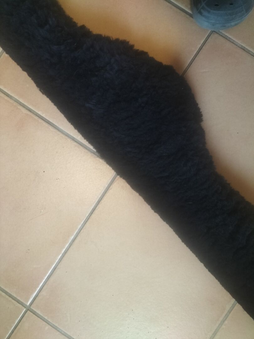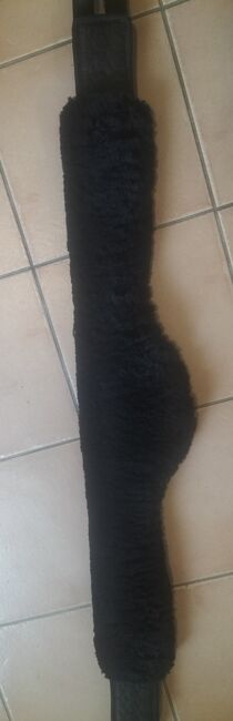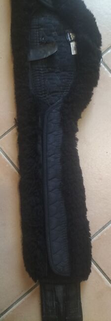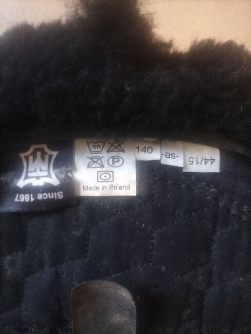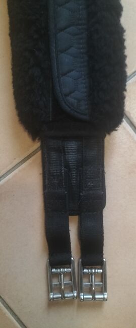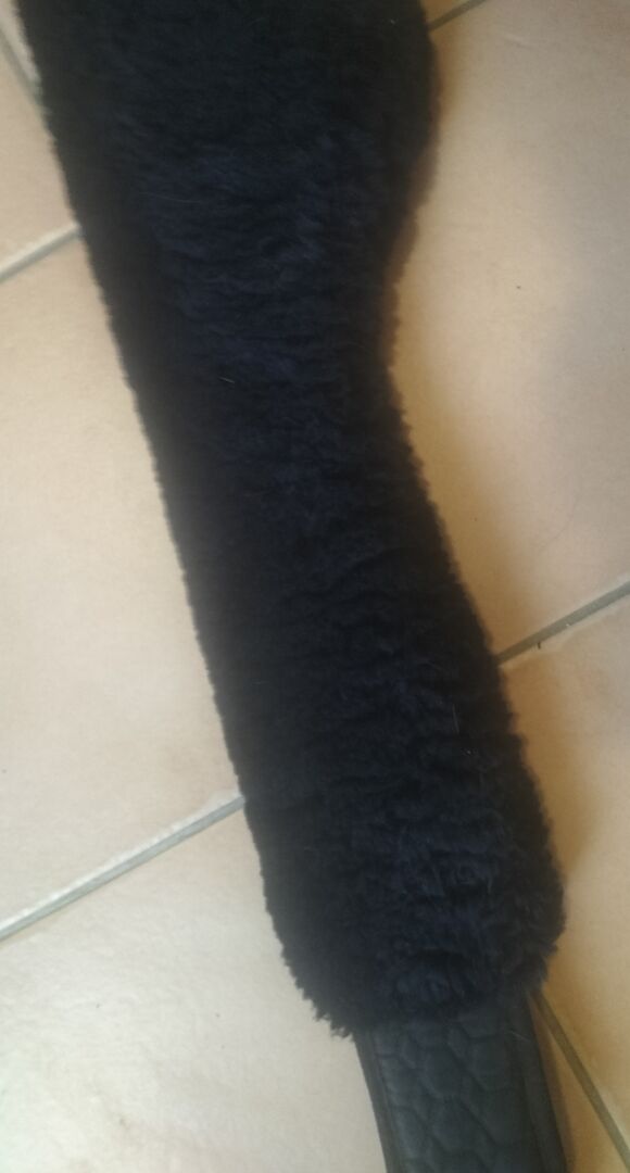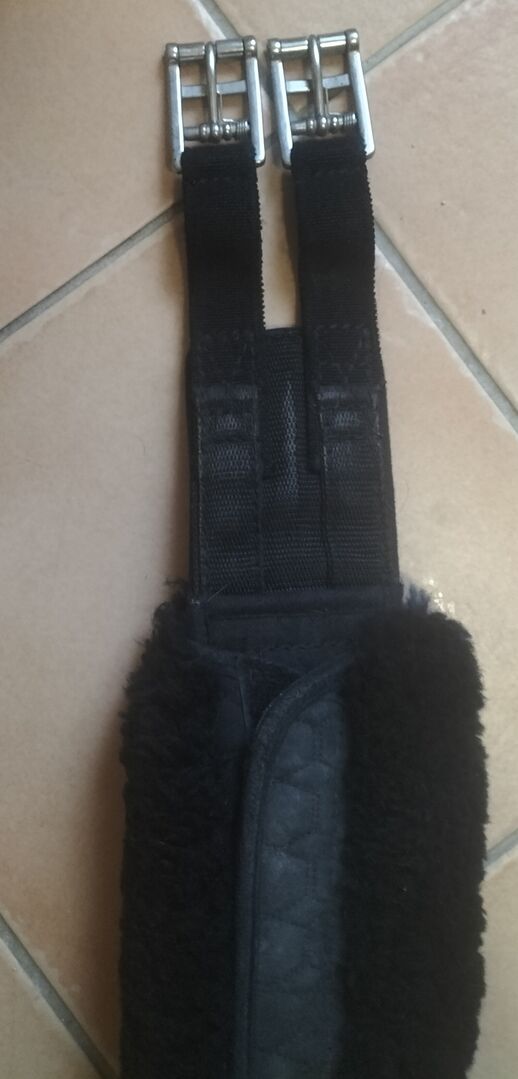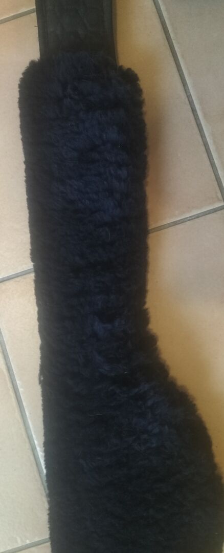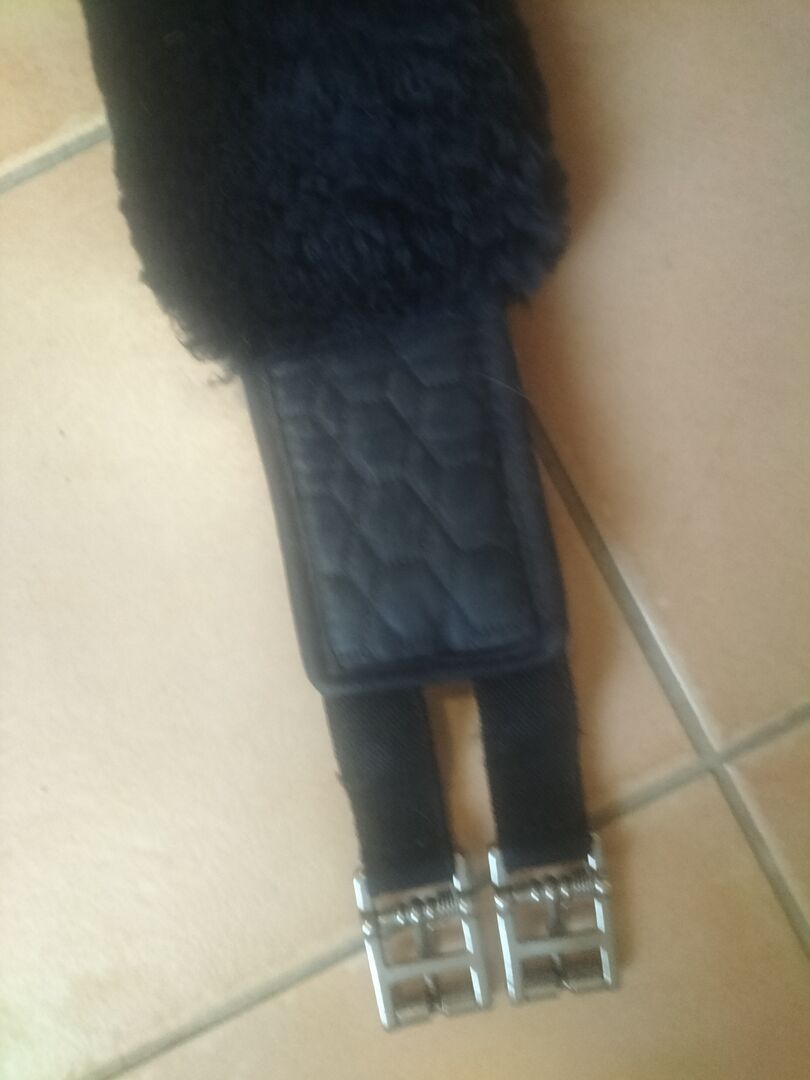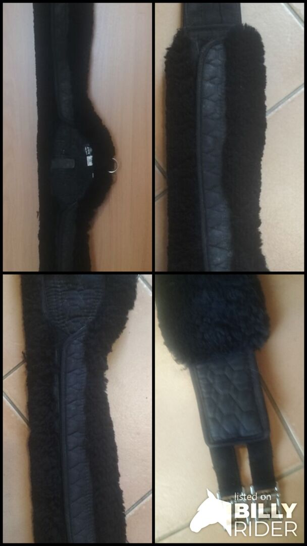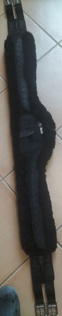 Popręg nosi normalne ślady zużycia. Popręg i skóra jagnięca są koloru czarnego.