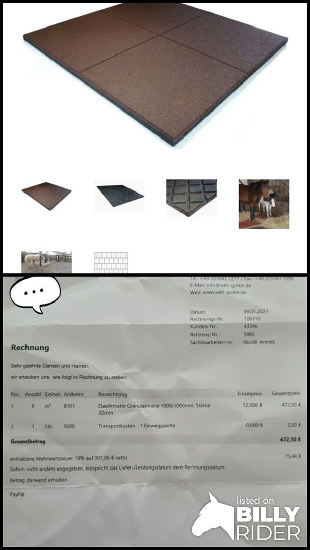 Hi Christina Kohagen, I am interested in your ad 'Boxenmatten / Wkh GmbH Elastik- Granulatmatten'. Please contact me!