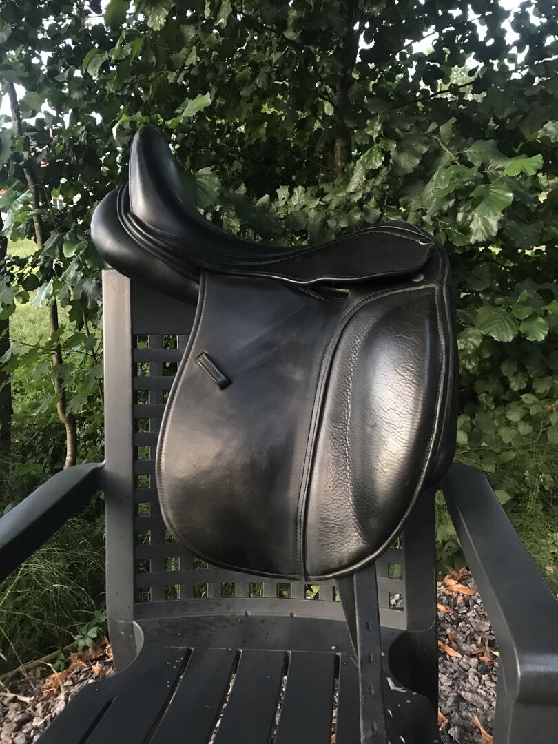 Cena pierwotna: 2.200 EUR Rozmiar: 17 cali Wiek: ok. 2 lata Tak pisze producent: Leonhard - klasyczne siodło ujeżdżeniowe z niższym siedziskiem. Leonhard to siodło dla jeźdźców, którzy cenią sobie wsparcie siedzenia przez siodło, mają spokojne nogi i nie chcą lub nie potrzebują zbyt dużych pomponów. Leonhard bardzo dobrze nadaje się również dla jeźdźców o dłuższych udach. podwójna skóra cielęca, francuskie panele.