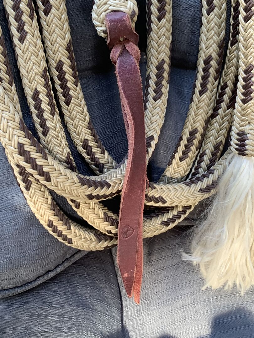 Mecate z Rein Leathers, jak nowy - Sprzedaję prawie nowy Mecate z pasującą skórą Rein-Leather, ręcznie robioną w Niemczech przez Mestenos Saddlery. Były używane tylko kilka razy. Najlepsza skóra. Kolor liny jest beżowo-ciemnobrązowy i ma wewnętrzne życie. 199. Odbiór możliwy, wysyłka za opłatą.