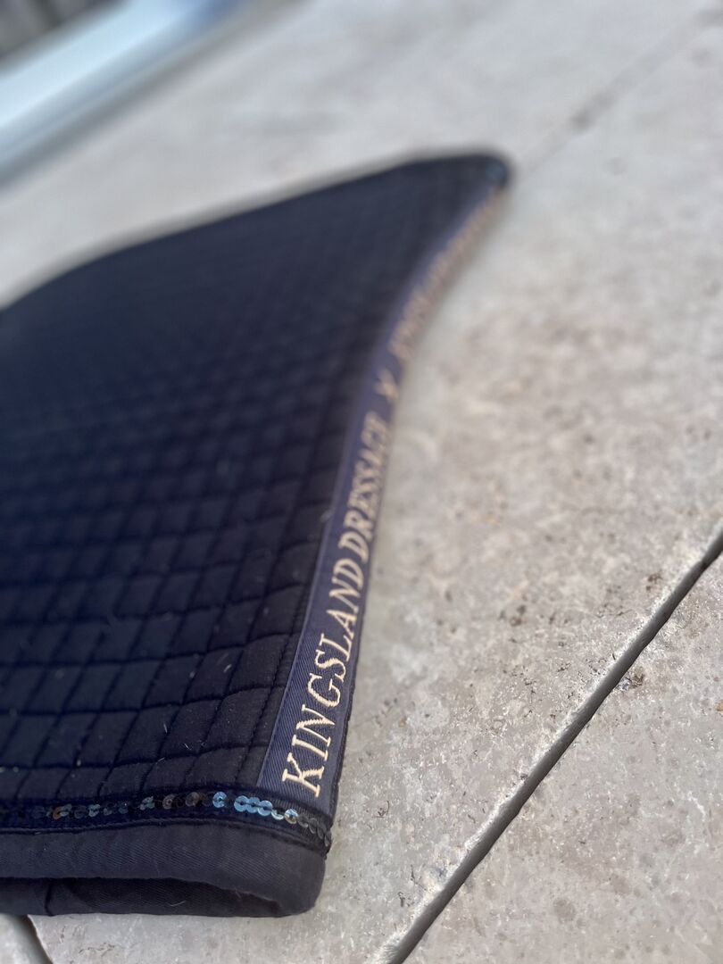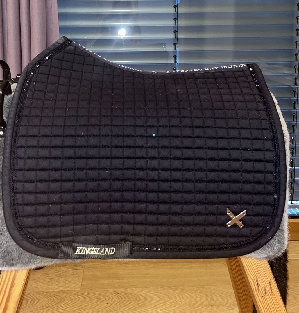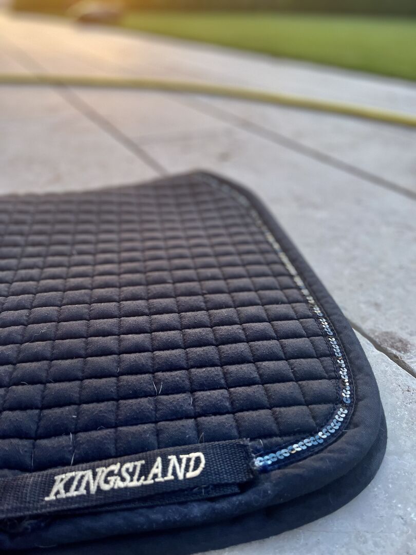 Mega szlachetna podkładka pod siodło Kingsland - Jak widać na zdjęciach, podkładka pod siodło jest bardzo prosta, ale z klasą, gdy już znajdzie się na końskim grzbiecie. Podkładka pod siodło towarzyszyła mi na kilku treningach z moim kucykiem, a teraz jest możliwość ozdobienia swojego kucyka podkładką pod siodło!