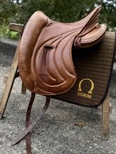Mercedes Signum Omega z łopatkami siodła Lotus - Sprzedam bardzo ładne i super wygodne siodełko Signum Mercedes. Jest to model specjalny. Siodło Mercedes i klapy siodła od Signum Lotus. Zdjęcia konia są dołączone. Pasowało bardzo dobrze. Niestety rozmiar siedziska 17,5 cala był dla mnie nieco za mały, ponieważ mam 1,80 wzrostu. 17,5 cala Długość popręgu 1 Regulowana płyta wpustowa, dzięki czemu można ją dostosować do wielu koni. Zrobiłem/wyregulowałem to sam za pomocą siatki pomiarowej do siodeł Następujące numery są wybite w