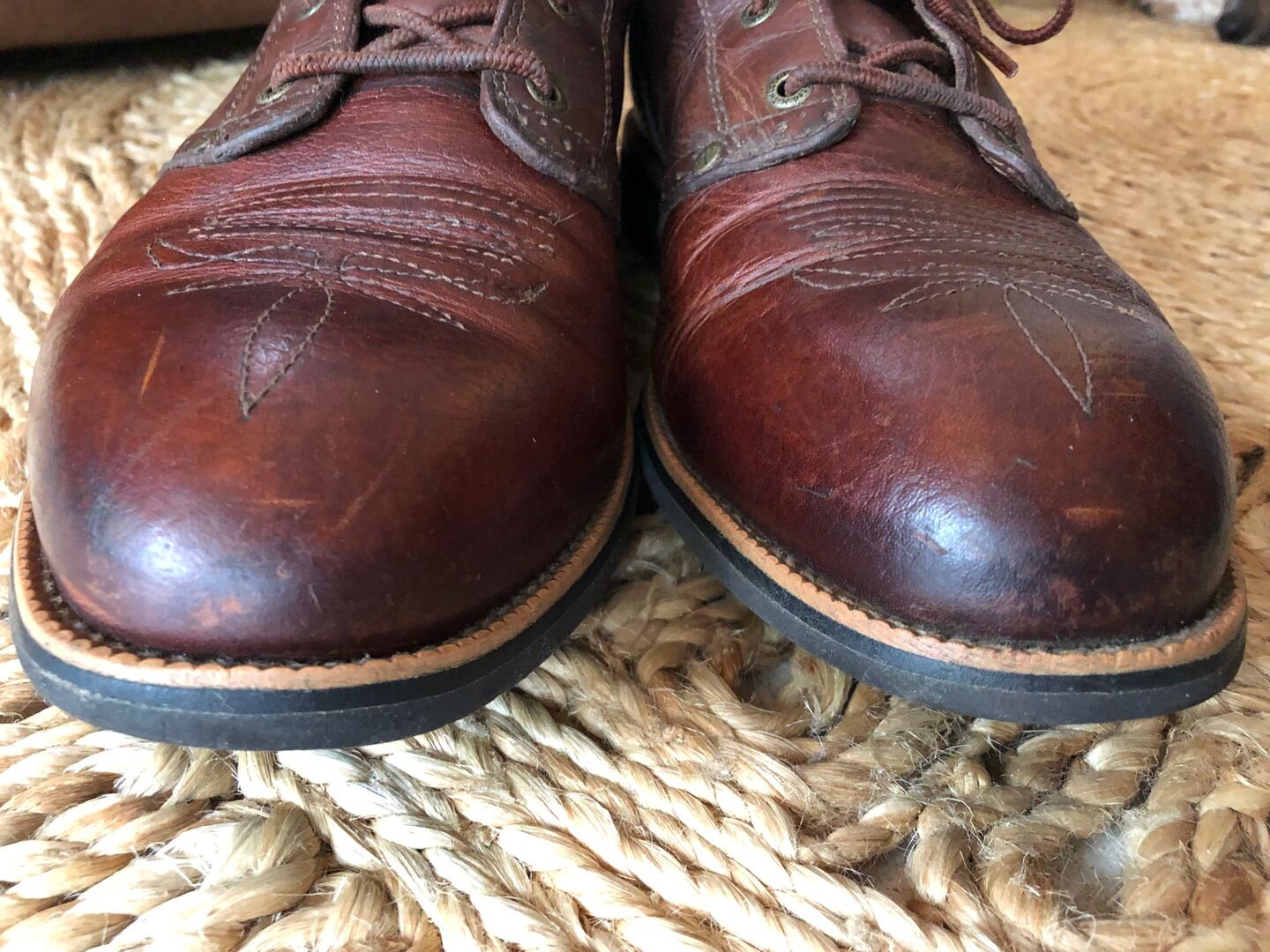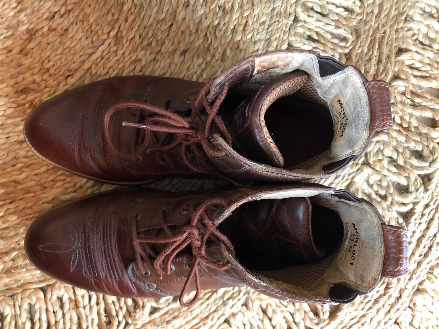 Męskie buty Twisted X Calf Roper Lacer Buty westernowe - Buty są zużyte, ale w dobrym stanie. Skóra była zawsze odpowiednio pielęgnowana i nie jest sucha/pęknięta/łamliwa. Poza tym stan widoczny jest na zdjęciach.