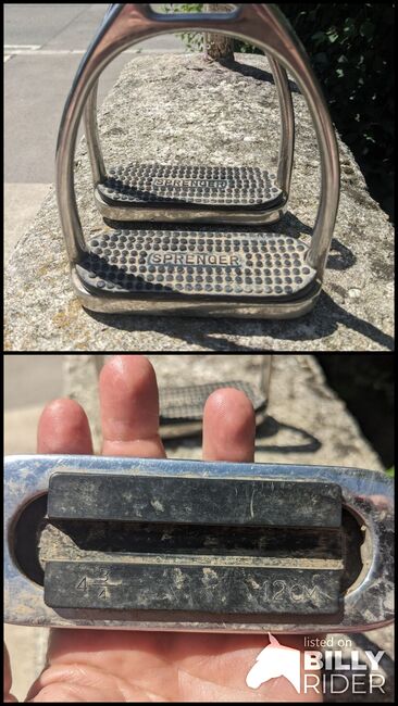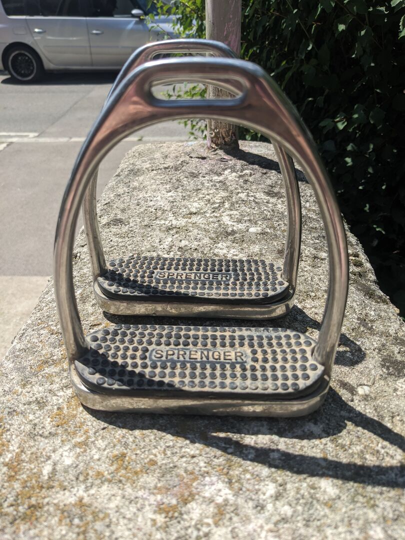 Metalowe strzemiona Sprenger 12 cm - Srebrne strzemiona marki Sprenger o klasycznym designie wykonane ze stali nierdzewnej z czarną gumową wkładką, 12 cm