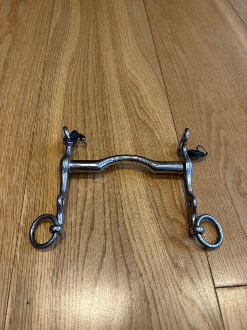Metalowy gryzak dla konia - Metalowy wędzidło dla konia w dobrym stanie. Czysty i w pełni funkcjonalny, z normalnymi śladami użytkowania. Brak uszkodzeń.