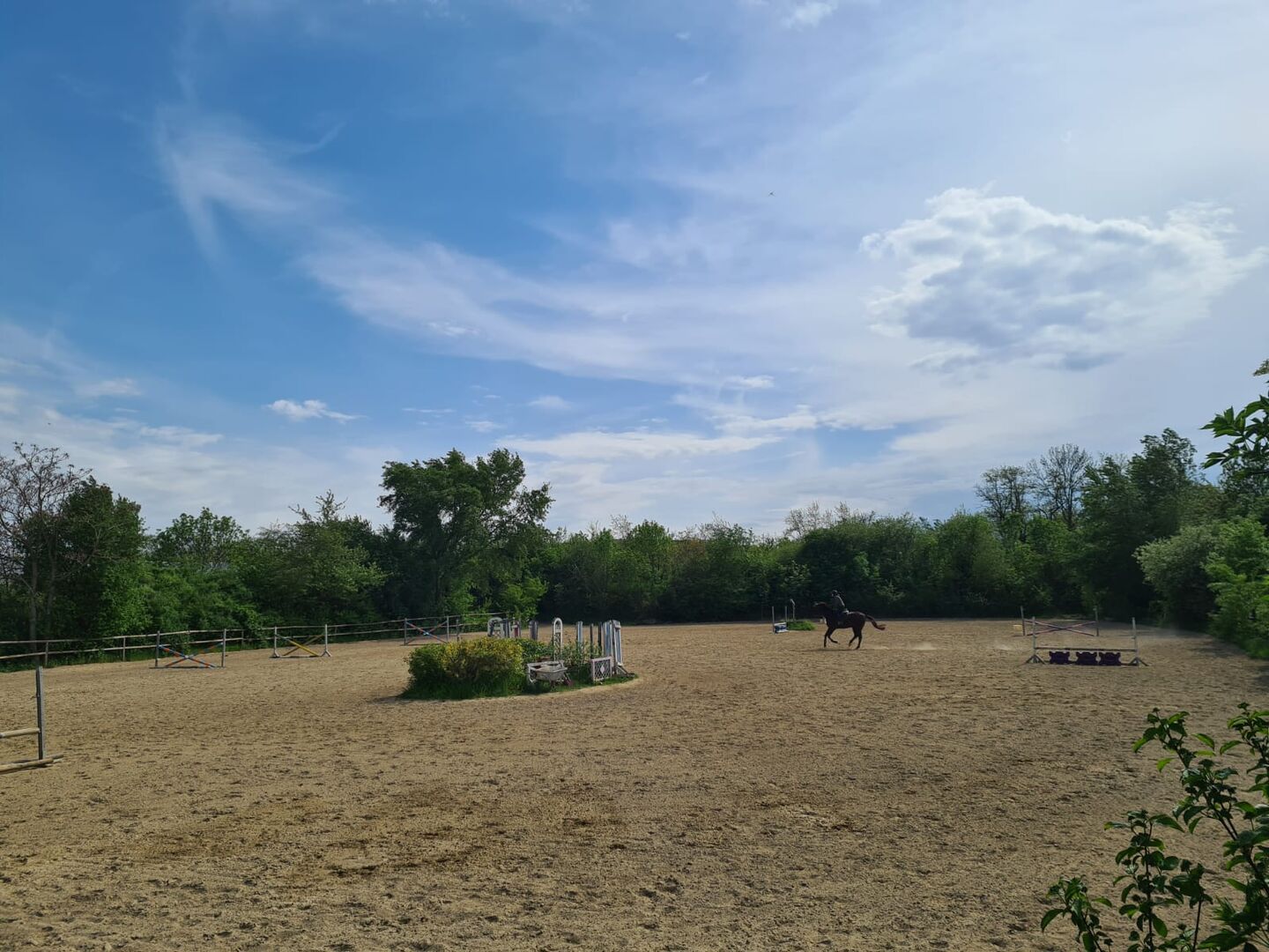 Dzięki rozbudowanemu zapleczu z 3 krytymi ujeżdżalniami, 2 ujeżdżalniami 60x20, areną do skoków XXL 80x60, round penem, a także terenami jeździeckimi wokół stajni, można u nas ćwiczyć jazdę konną przy każdej pogodzie.