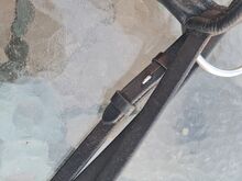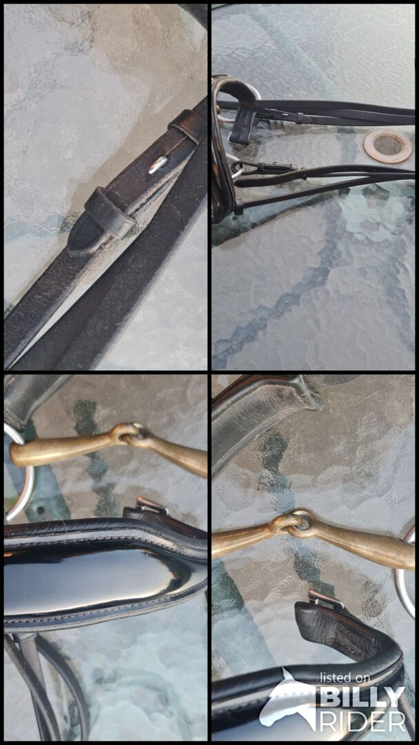 Miękka uzda typu snaffle z gryzakiem Aurigan - Karabińczyk z miękkiej skóry Regulowany na siodle Wewnętrzny hak uzdy, w którym zatrzaskuje się wędzidło Bez wodzy Łącznie z wędzidłem Aurigan 13,5 cm