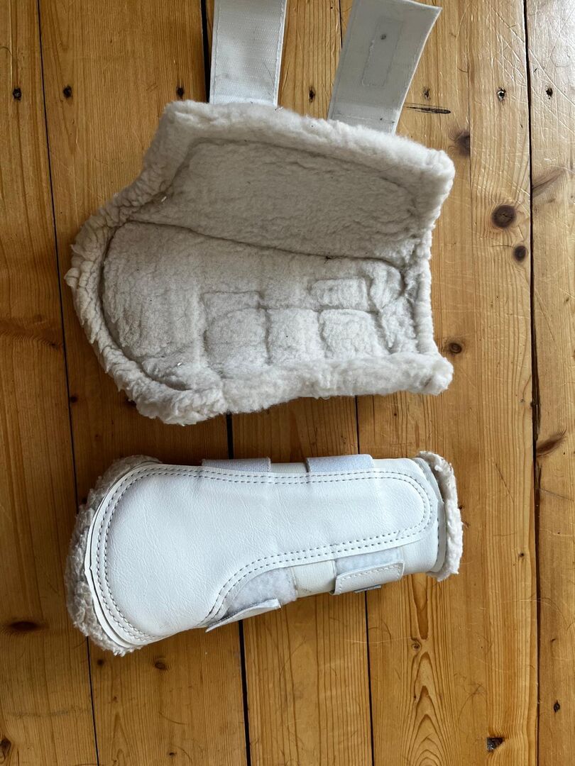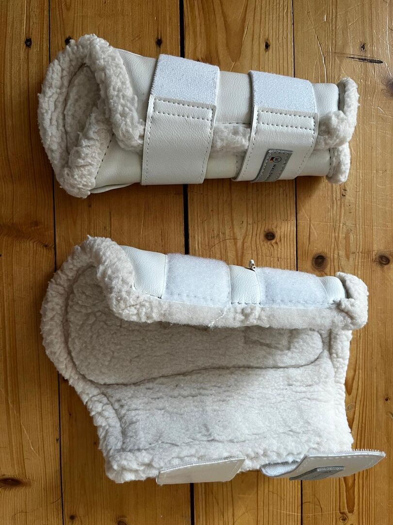 Miękkie getry ujeżdżeniowe Waldhausen - białe - rozmiar M - Oferuję na sprzedaż używaną parę (lub dwie pary) miękkich getrów ujeżdżeniowych Waldhausen w kolorze białym, rozmiar M. Były używane tylko dwa razy. Były używane tylko dwa razy i są w bardzo dobrym stanie - świeżo wyprane po ostatnim użyciu, bez większych zabrudzeń i uszkodzeń. Widoczne są jedynie niewielkie ślady użytkowania.