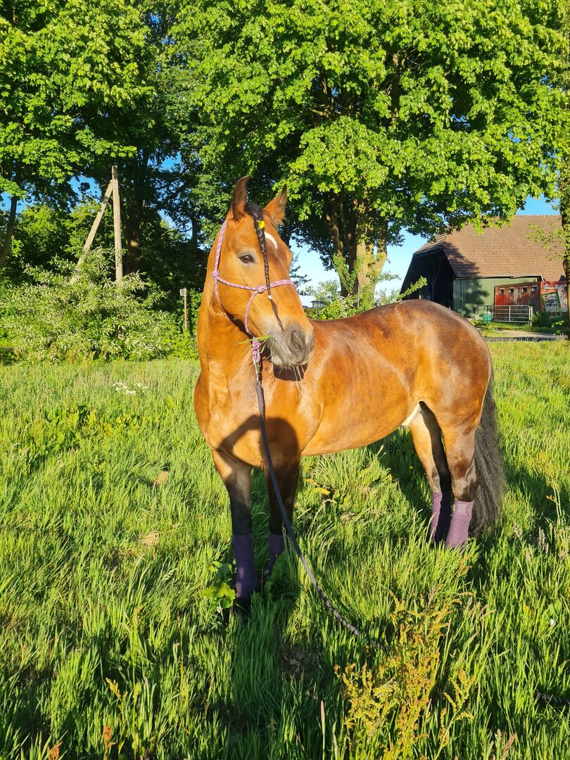 Mieszanka fryzyjska szuka wymarzonego domu - Sprzedajemy tę elegancką mieszankę koni fryzyjskich i zimnokrwistych w imieniu klienta. Jeśli szukasz sułtana wśród koni, Moritz jest odpowiednim koniem dla Ciebie. Jest absolutnym skarbem, pompatycznym małym koniem, który sprawia, że jego jeździec czuje się świetnie przez cały czas. Jest po prostu gotowy na wszystko, jazdę na zewnątrz, podwójne lonżowanie, powożenie z jedną lub dwiema uprzężami, wolne skoki, pracę z ziemi, sztuczki cyrkowe, skoki na małych torach, nie ma nic, czego Moritz by nie zrobił! Jego poziom ujeżdżenia jest obecnie pomiędzy E i A. Jest bardzo miły w obsłudze, nie ma problemów z kowalem, kopyta stawia lekko, jazda z przyczepą w parze lub w pojedynkę również nie stanowi problemu, podczas pielęgnacji stoi spokojnie i cieszy się z pielęgnacji sierści. Szukamy dla Moritza domu z 10 gwiazdkami. Sprzedajemy go z ciężkim sercem z powodów zdrowotnych. Moritz jest czułym koniem, zaufanie jest dla niego najważniejsze, a kiedy już się rozmrozi, jest towarzyszem, z którym można się zestarzeć. Tak powinien zostać sprzedany, nie do ośrodka treningowego czy handlarza! Ale miejsce z domem na zawsze. Moritz jest kompatybilny z wałachami i klaczami. Żyje w mieszanym stadzie w otwartej stajni. Nie ma żadnych znanych chorób. Moritz to koń, którego łatwo oszukać wyglądem, ma ogromną chęć do pracy i chce być odpowiednio zachęcany i wykorzystywany. Zarówno pod siodłem, jak i w bryczce zawsze ma dość ruchu i jest ciężko pracującym koniem w kwiecie wieku. Więcej zdjęć i filmów można przesłać na życzenie.